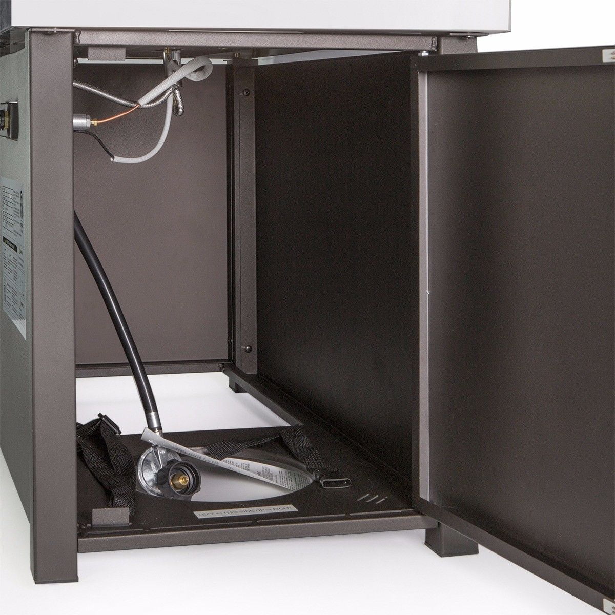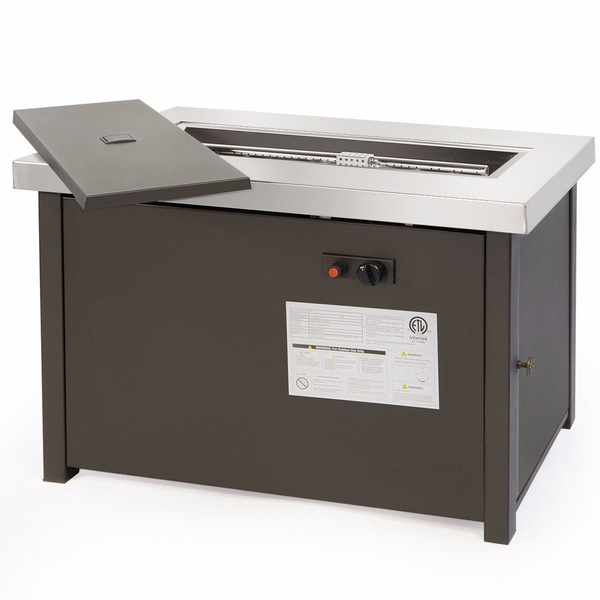 Modern & Durable Design: Constructed from weather-proof stainless steel and finished in a powder-coated bronze, this fire pit brings sleek style and long-lasting use to your patio or backyard. Powerful 50,000 BTU Output: Produces strong, steady heat to keep guests comfortable during chilly evenings—no smoke, just warmth. Multifunctional Top: Includes a flat lid that transforms the pit into a full tabletop surface when not in use, adding functionality to your outdoor space. Beautiful Flame Display: Includes decorative glass beads that enhance the flame’s appearance and reflect the flickering light for a stunning visual effect. Convenient Features: The easy-access compartment lets you quickly switch out propane tanks, while the sure-fire trigger ignition makes lighting effortless. Safety Certified: Equipped with a thermocouple flame failure device for added protection and fully CSA and ANSI certified for peace of mind. All-Weather Cover Included: Protect your fire pit from the elements with the included nylon cover—ideal for year-round outdoor use.