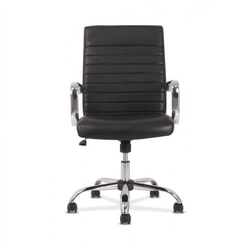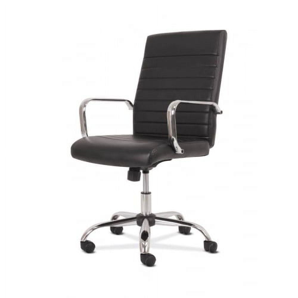 basyx by HON Exec Chair, Black Leather basyx by HON Executive Chair | Fixed Arms | Black SofThread Leather | Chrome Accents