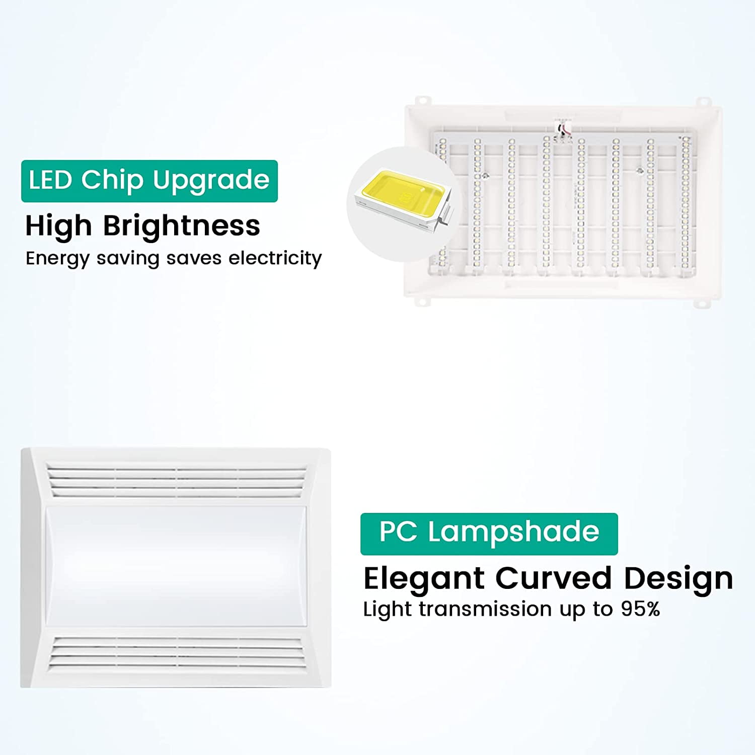 Enjoy Quiet Ventilation In addition to the beautiful appearance and diverse functions, our exhaust fan is also very convenient to install. Whether it is a new home renovation or an old house renovation, you can choose our exhaust fan. The exhaust fan is pre-assembled and has an integrated plug. You only need to install it according to the instructions and plug in the power supply to use. One machine dual use, ventilation and illumination function 2 in 1, high transparency, high resistance to yellowing, more luster, safe to use. Self-turning windward baffles can effectively block mosquitoes and effectively prevent turbid gas reflux. Low volume, low noise 50-60Hz exhaust fan, it can help reduce indoor moisture and muggy odor, bringing you comfortable bathing.
