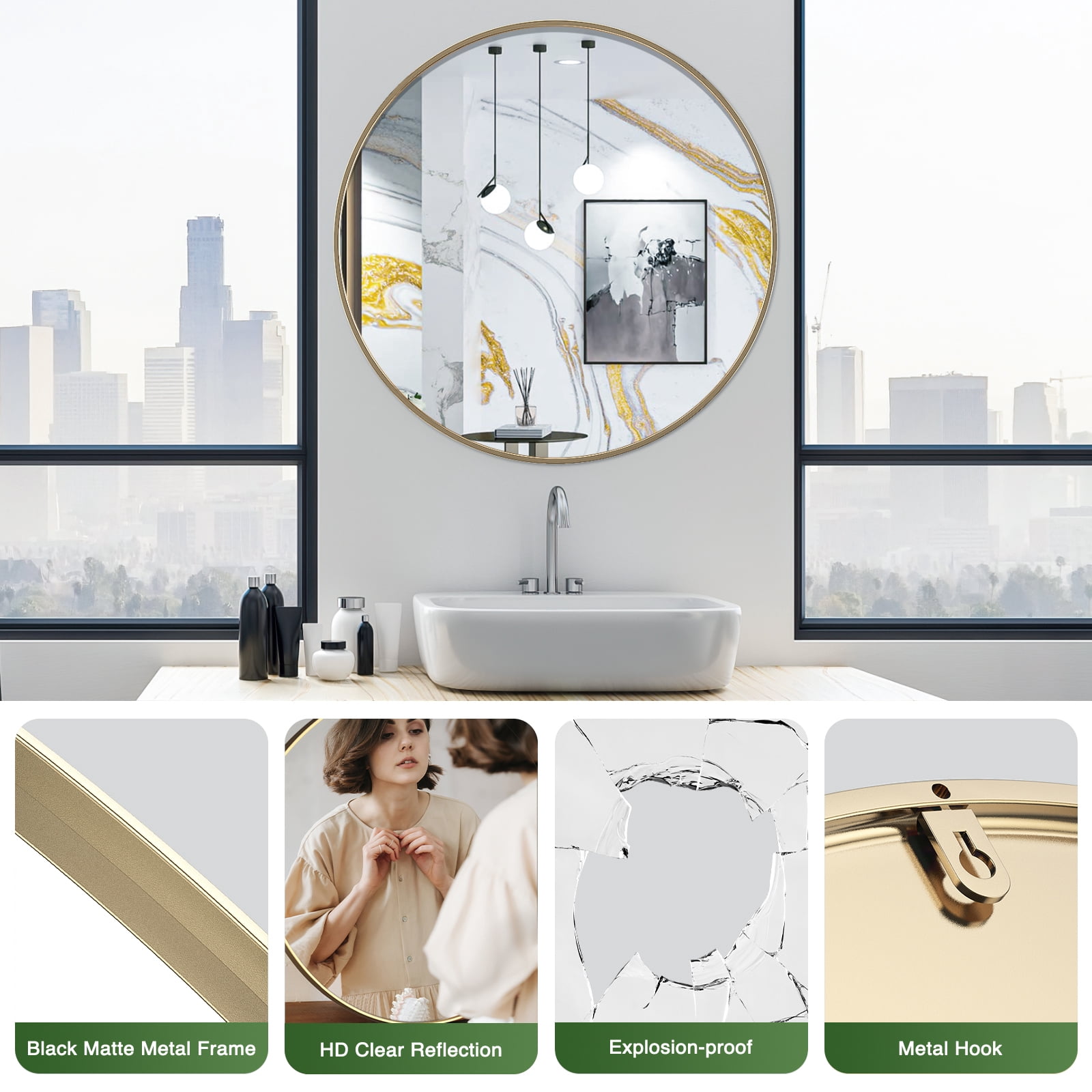 Bathroom Mirror, 24 inch Gold Circle Wall Mirrors, Wall Mounted Vanity Mirror, Home Decor Metal Framed Bath Mirror for Living Room Bedroom Entryway