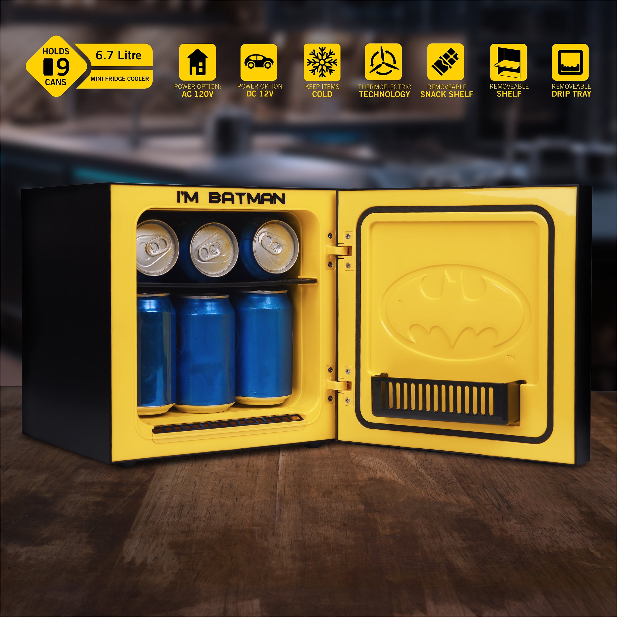 Batman Black Cooler Mini Fridge 6.7L Single Lightup Logo Door 9 Can ACDC
