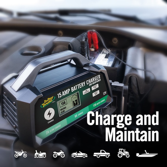 The 12V, 15/8/2 Amp Battery Tender® Smart Battery Charger is powerful and versatile! Great for automotive, marine, industrial, and heavy-duty applications. Equipped with an LCD display for easy to read charging status, charging current, selectable voltage, battery type (chemistry), and error messages. The charge rate selection button makes it easy to change from 15 amps, 8 amps, and 2 amps. All Battery Tender® SuperSmart Battery Chargers automatically fully charge and maintain your battery safely for months at a time. It is as easy as connecting the hard-wired clamps to your 12V battery, plugging in the AC power cord, and selecting your charging mode of choice. Battery Tender® smart battery chargers extend the battery’s life 2 X or more