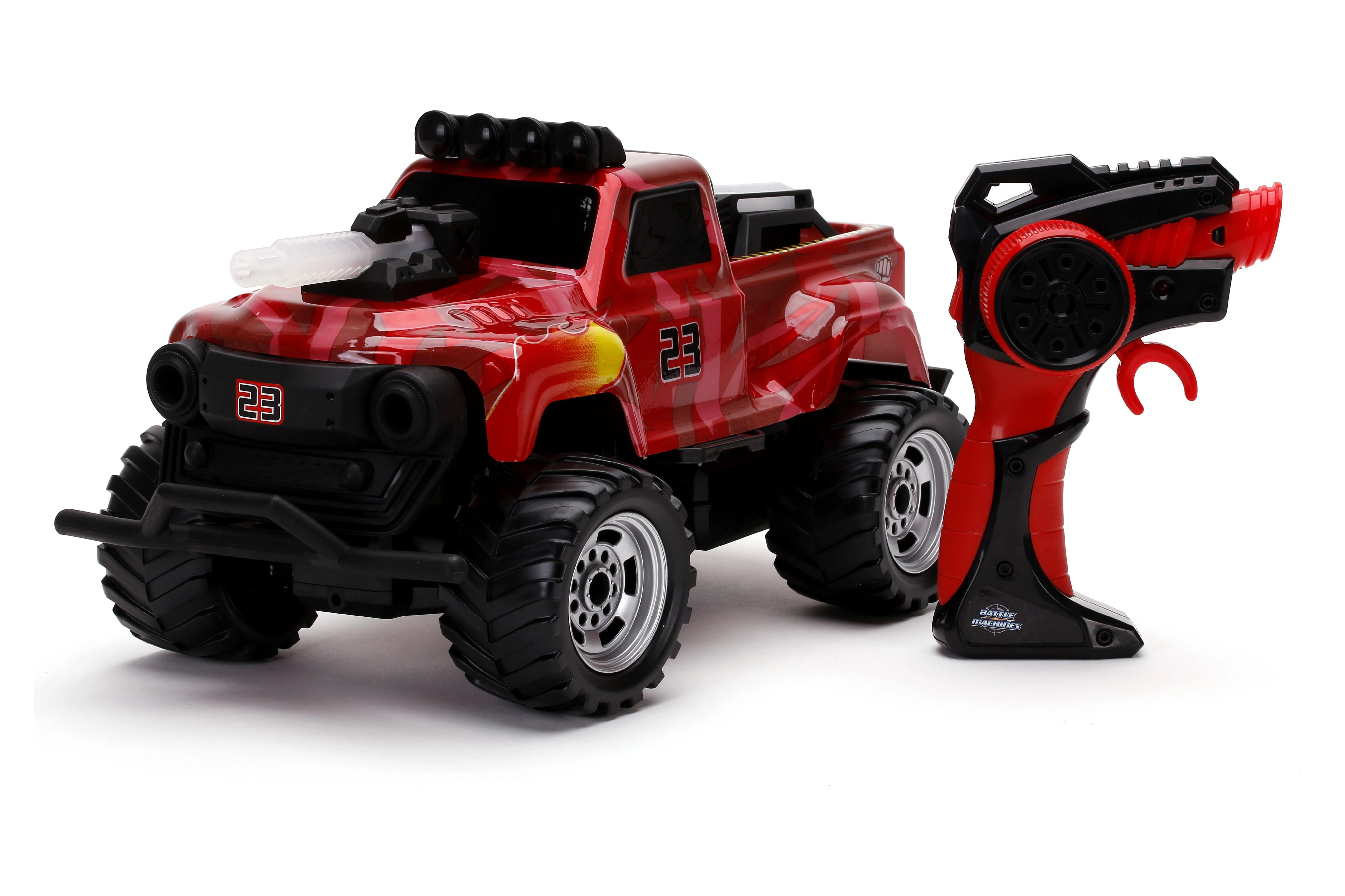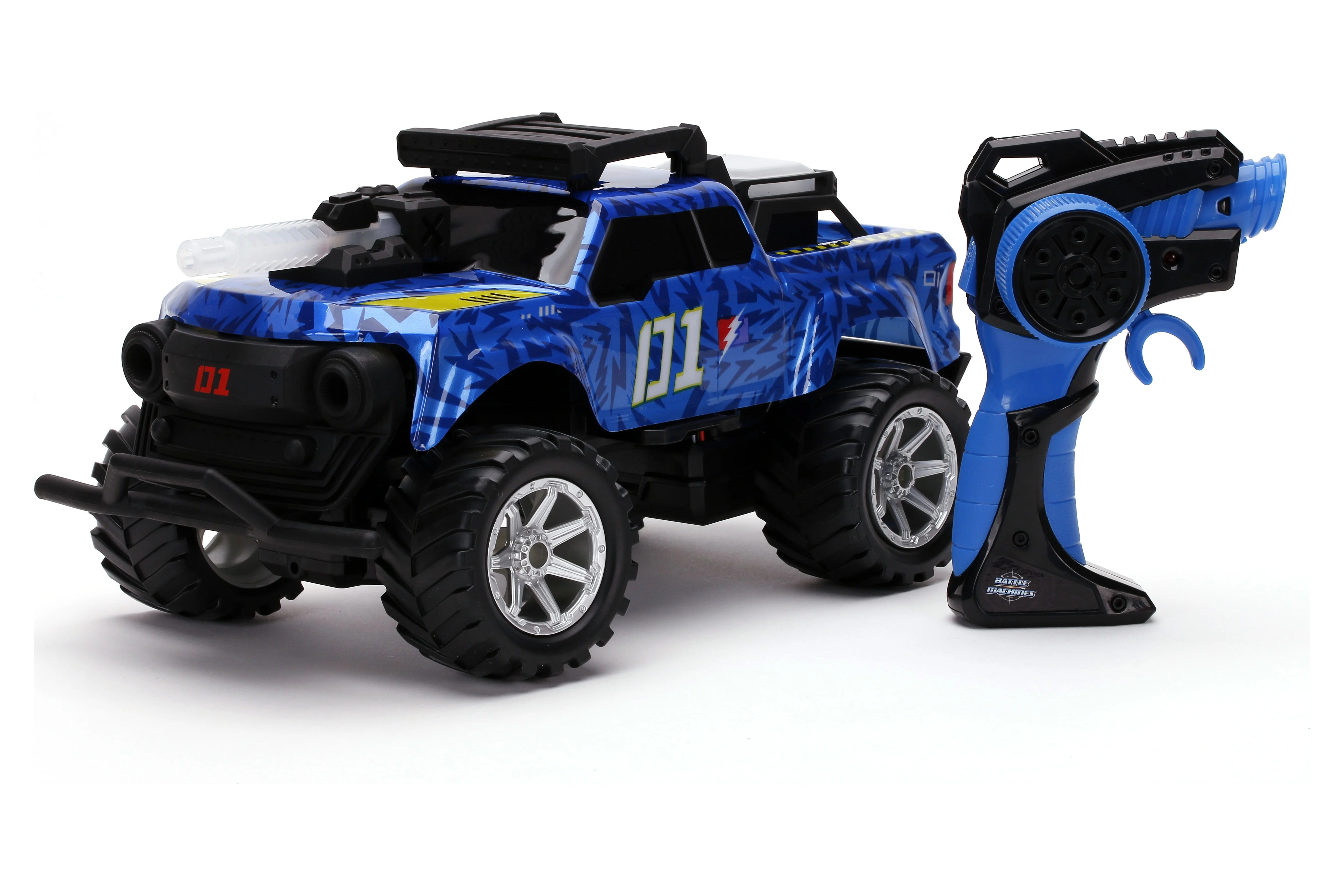 Battle Machines is an innovative and interactive radio control experience equipped with a laser tag combat system. Fully functioning with innovative technology. Players get two premium decorated RC trucks measuring approximately 12″. Equipped with lights and sensors, Battle Machines Laser Tag delivers an action packed experience. Durable remote is equipped with sounds, laser trigger, 2 speed trigger, and game play indicators delivering an action-packed experience. Product comes ready to play out of the box. Simple and convenient recharging with USB technology. Battery’s included for the remote controller. 2.4 GHz frequency enables up to 16+ players to play at a range of 100 feet. Ages 6+.