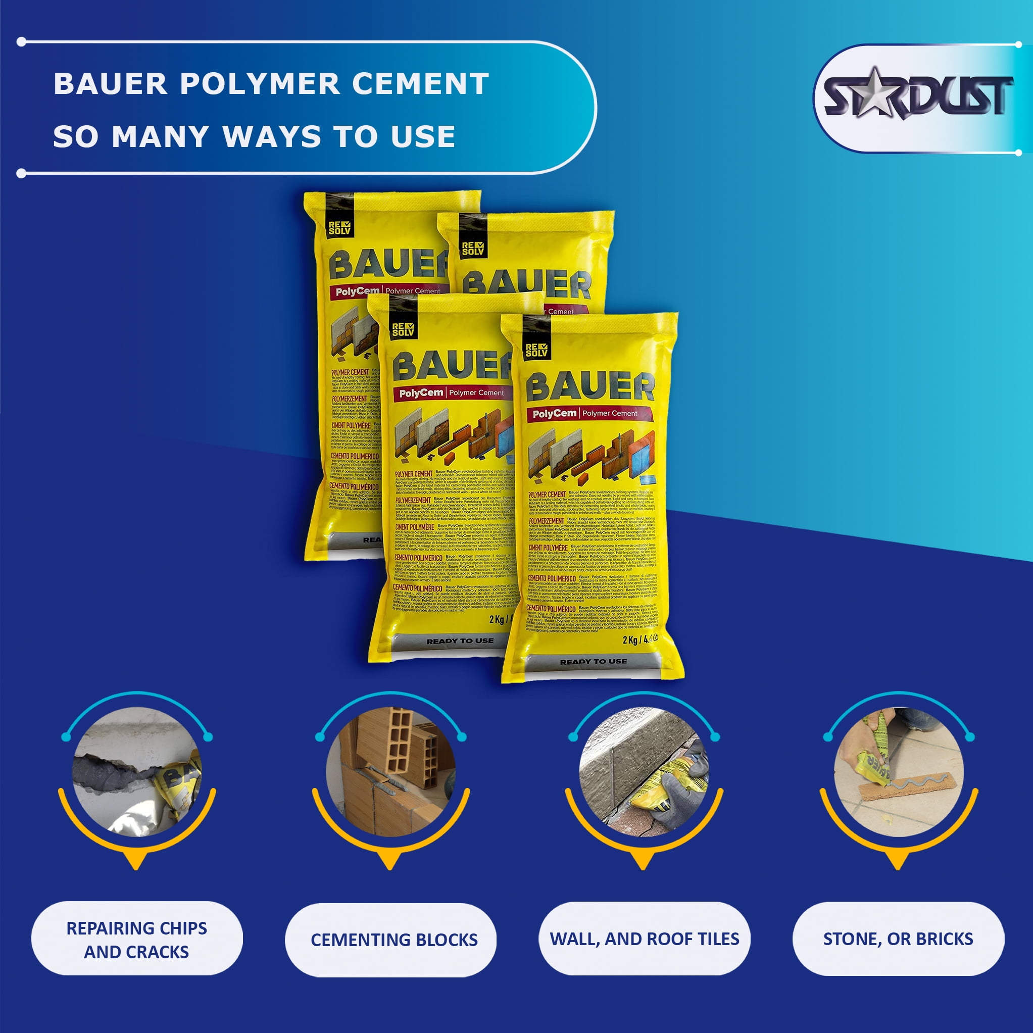 HIGH YIELD: Simplify repairs with Bauer high-yield synthetic polymer adhesive HIGHLY EFFICIENT: Delivers up to 20 times the yield of traditional cement mix VERSATILE: Perfect for repairing concrete, cement, brick, stone, tile, & more MULTI-USE: Versatile for driveway crack filler, tile repair, & cementing blocks UNIVERSAL: Instant Polymer Cement offers simple step, wall, & walkway repairs READY-TO-USE: Eliminates the guesswork, & errors of traditional cement mix QUICK FIX: Fast & easy repairs on both small fixes & major renovations SUSTAINABLE: Bauer’s resealable packages reduce waste & promote sustainability DURABLE: Easy-to-store and move 4.4 lb. bag keeps unused material fresh SUPPORT DIVERSITY: Certified Minority Business Enterprise (MBE) product