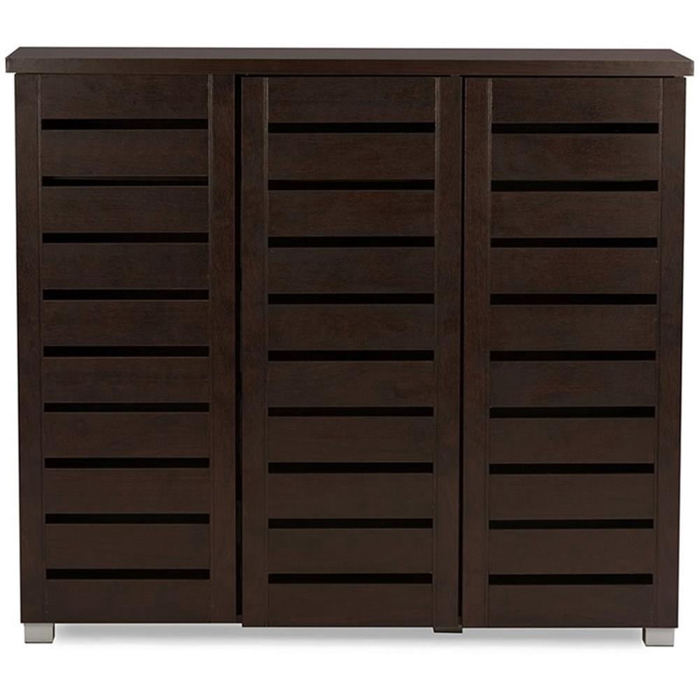 Baxton Studio Adalwin Modern and Contemporary 3-Door Dark Brown Wooden Entryway Shoes Storage Cabinet, 13.1 inchLarge x 44.46 inchW x 38.34