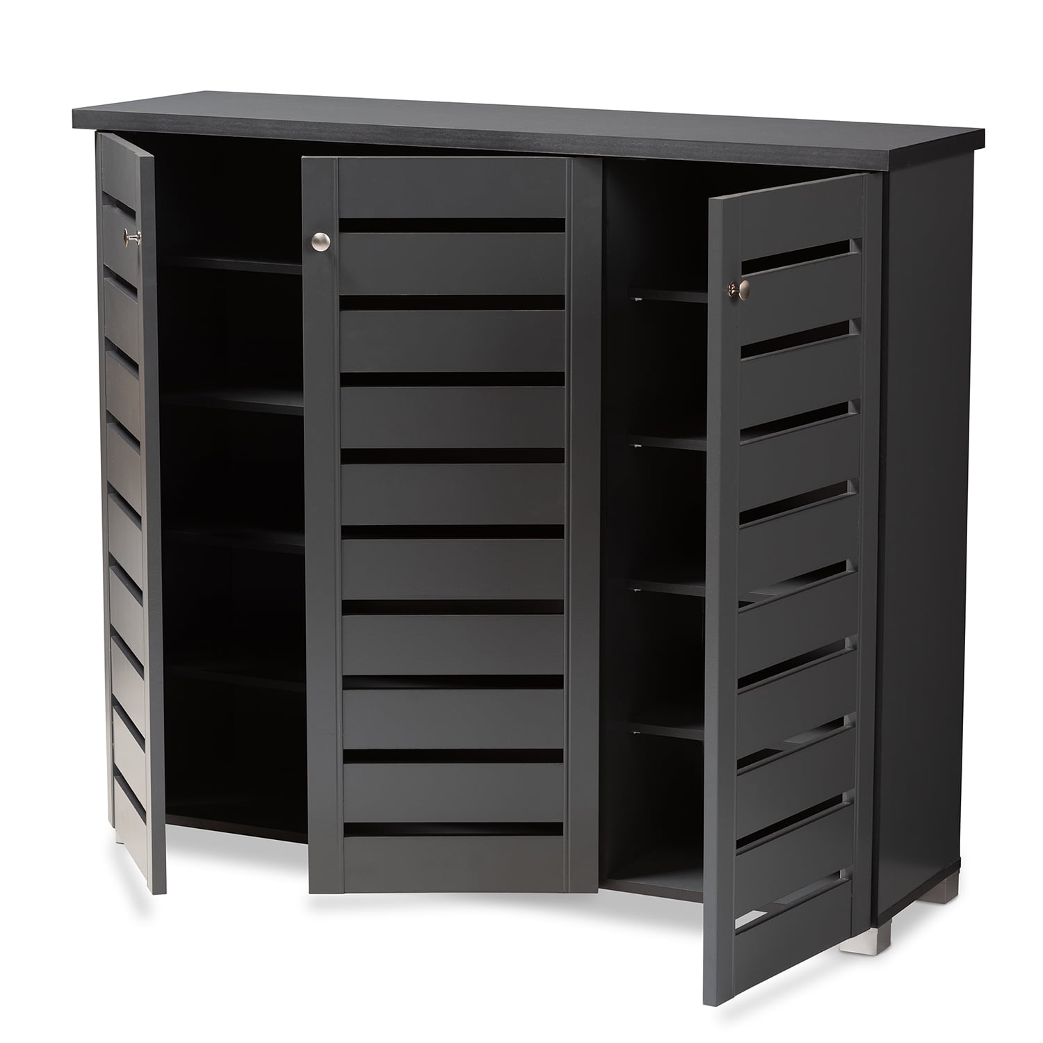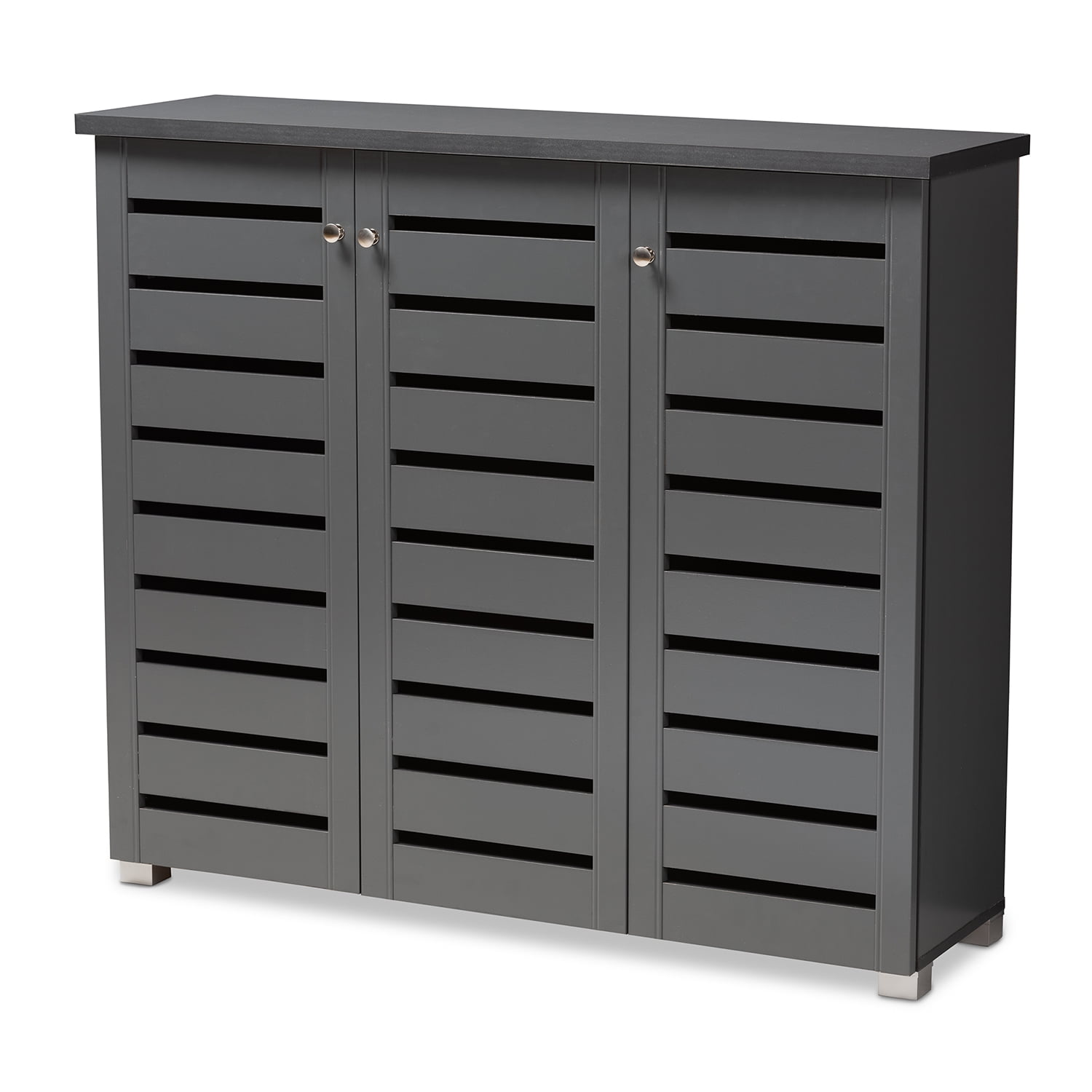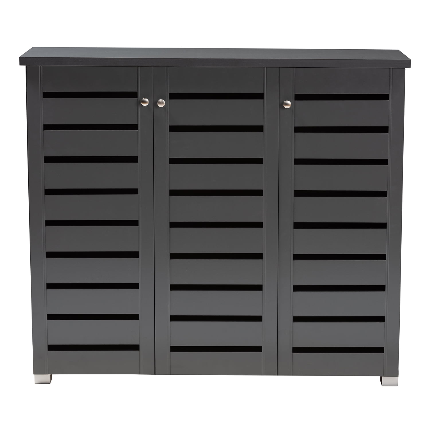 Baxton Studio Adalwin Modern and Contemporary Dark Gray 3-Door Wooden Entryway Shoe Storage Cabinet