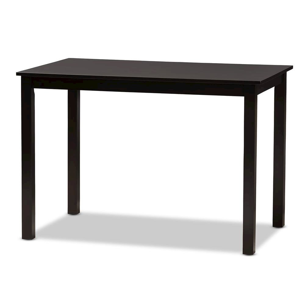 Baxton Studio Adley Modern and Contemporary 5-Piece Dark Brown Finished White Faux Leather Dining Set The Adley 5-piece dining set features a clean, timeless design, accented by on-trend faux leather upholstery. Constructed of solid rubberwood frame for sturdiness, the Adley feature white faux leather upholstery for every days use and easy maintenance. Foam filling ensures the most comfortable seating experience while you enjoy the dinners. Slightly curve and ergonomic seat back complete the look of a contemporary piece of furniture. Made in Malaysia, the Adley requires assembly. Specifications: Modern and contemporary 5-piece dining set Set includes one table and four chairs Solid rubberwood construction with mdf table top Dark brown finishing Dining table is with shaker legs Upholstered seat in white faux leather Assembly required