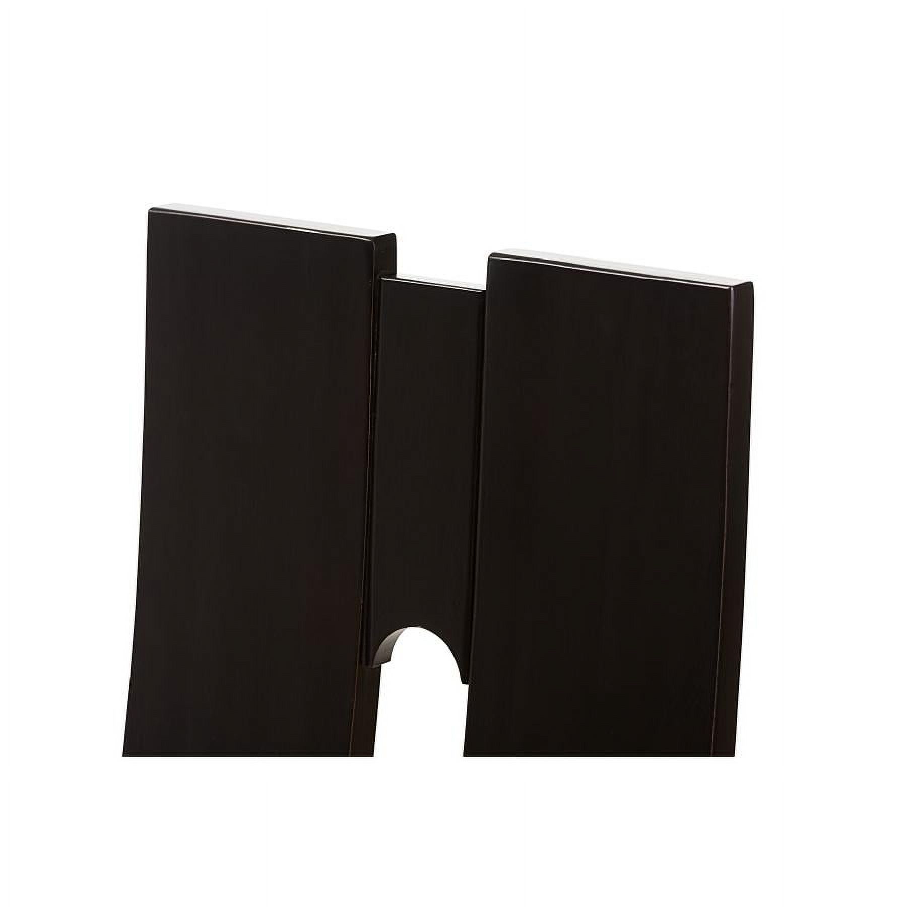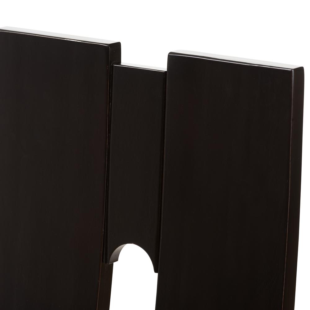 Finish: Dark Brown Seating Dimensions: 18.5″ H (from Floor) x 18.11″ W x 15.75″ D Material: Faux Leather, Solid Rubberwood, Foam Back Height: 40.94″ Style: Contemporary Cut-out back design Padded seat Assembly required Care Instruction: Wipe with a damp cloth Warranty: 30 Days limited