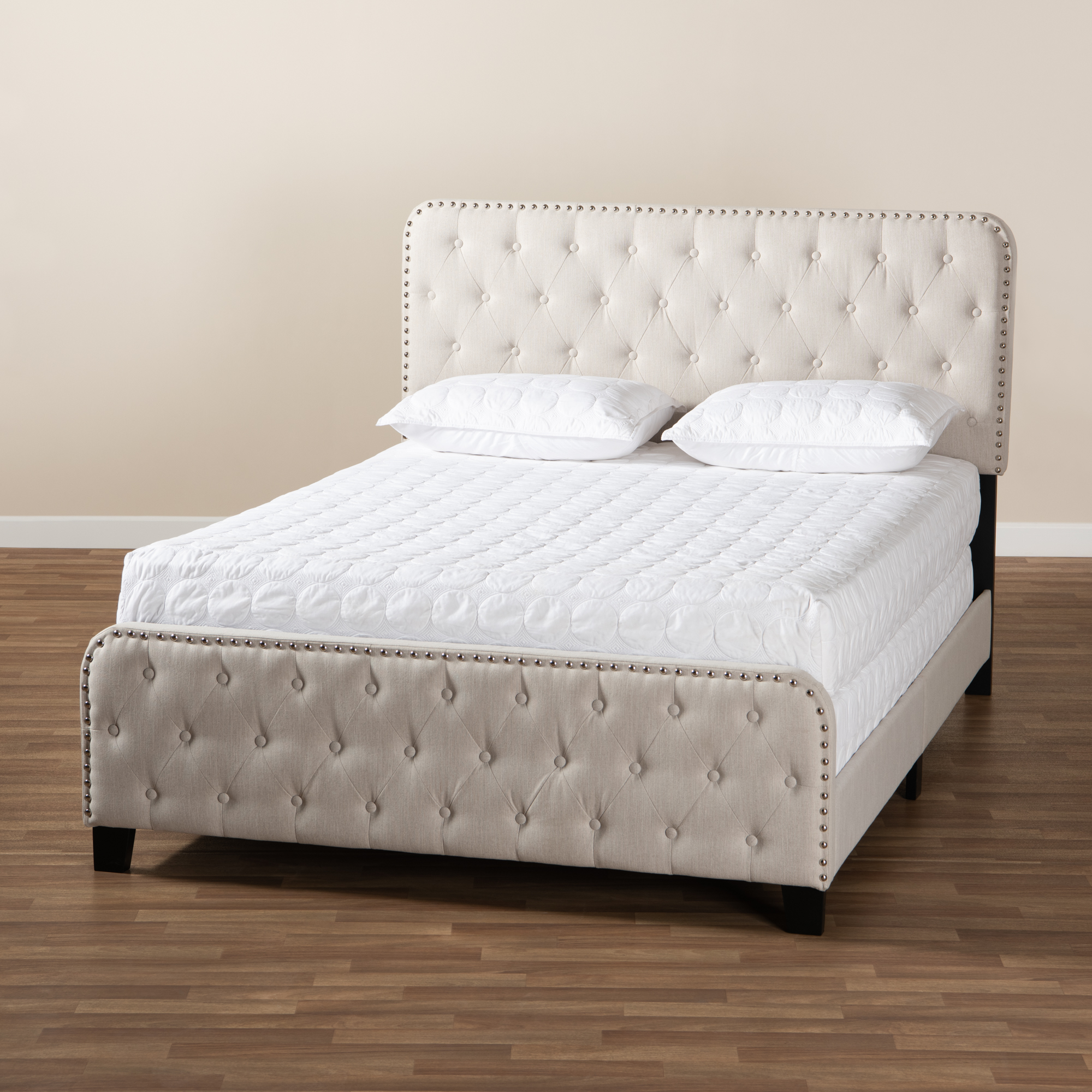Baxton Studio Annalisa Modern Transitional Beige Fabric Upholstered Button-Tufted King Size Panel Bed