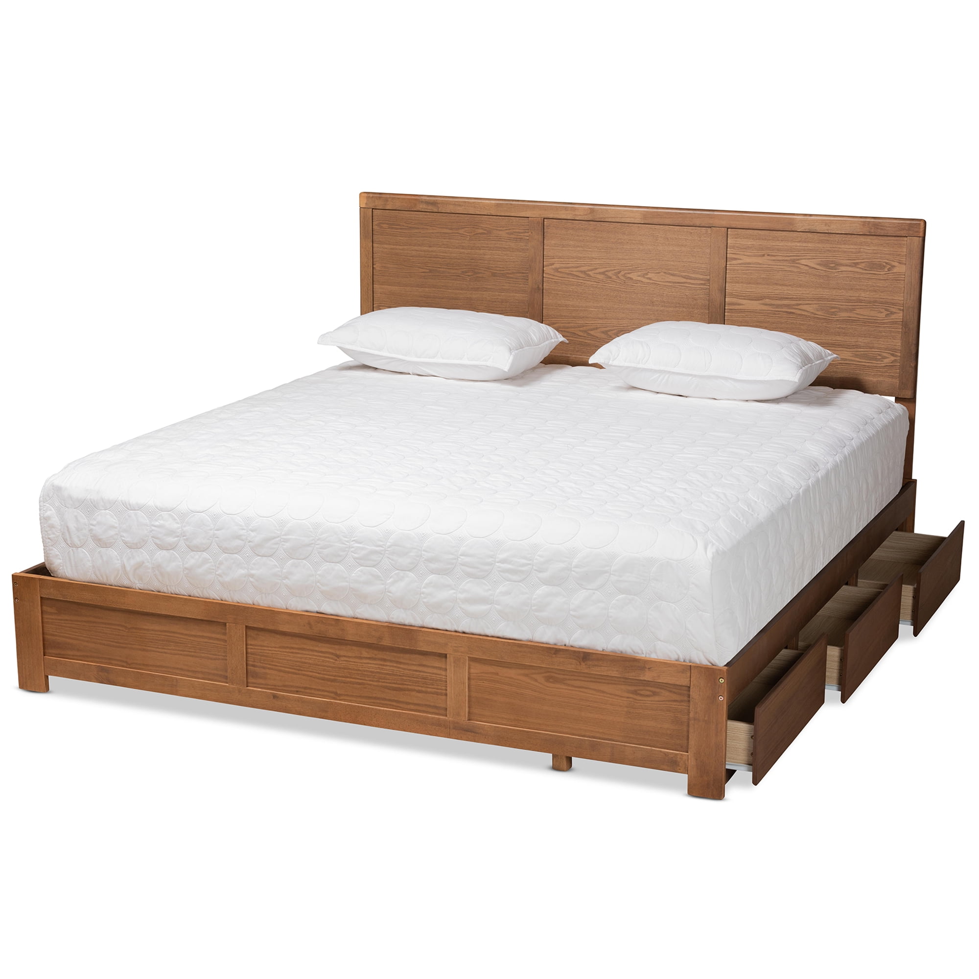 Baxton Studio Aras Contemporary/Modern Wood Storage Platform Bed, King, Ash Walnut