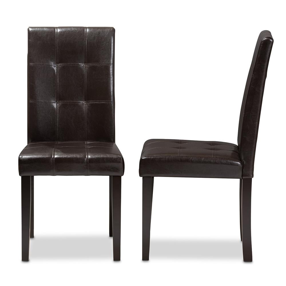 Extend effortless style into your dining space , the Avery dining chair set works well in the home or in a café or restaurant. Constructed of sturdy and robust rubberwood for Deep-lasting support, the dining chair seat is upholstered in dark brown faux leather for easy maintenance and every day’s use. Featuring high back with tufted detailing, the Avery dining chair set is foam-filled for added support and comfort. Sleek square design accents most interior decors for easy styling, the Avery dining chair set works well in any aesthetic for versatility. Features: Finish: Dark Brown Seating Dimensions: 18.5″ H (from Floor) x 17.72″ W x 16.93″ D Material: Faux Leather, Solid Rubberwood, Foam Back Height: 37.99″ Style: Contemporary Set includes two chairs Tapered legs Tufted detailing Assembly required Care Instruction: Cabinet wipe with a dry cloth; cushion spot clean only Warranty: 30 Days limited Specifications: Product Dimensions: 37.99″ H x 17.91″ W x 20.47″ D Product Weight: 25 lbs Leg Dimensions: 14.96″