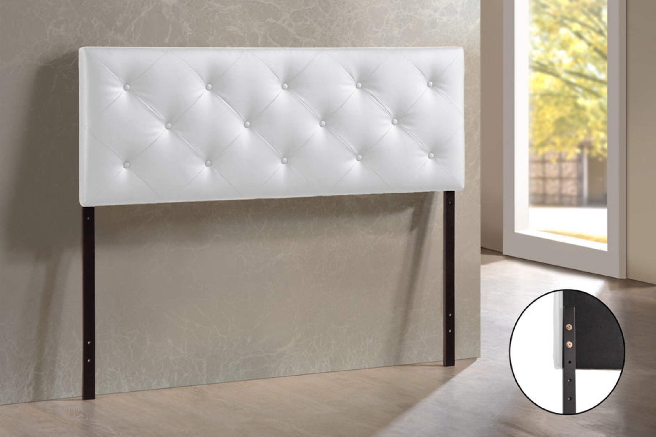 Full-sized headboard White faux leather Rubberwood frame with foam padding Button-tufted