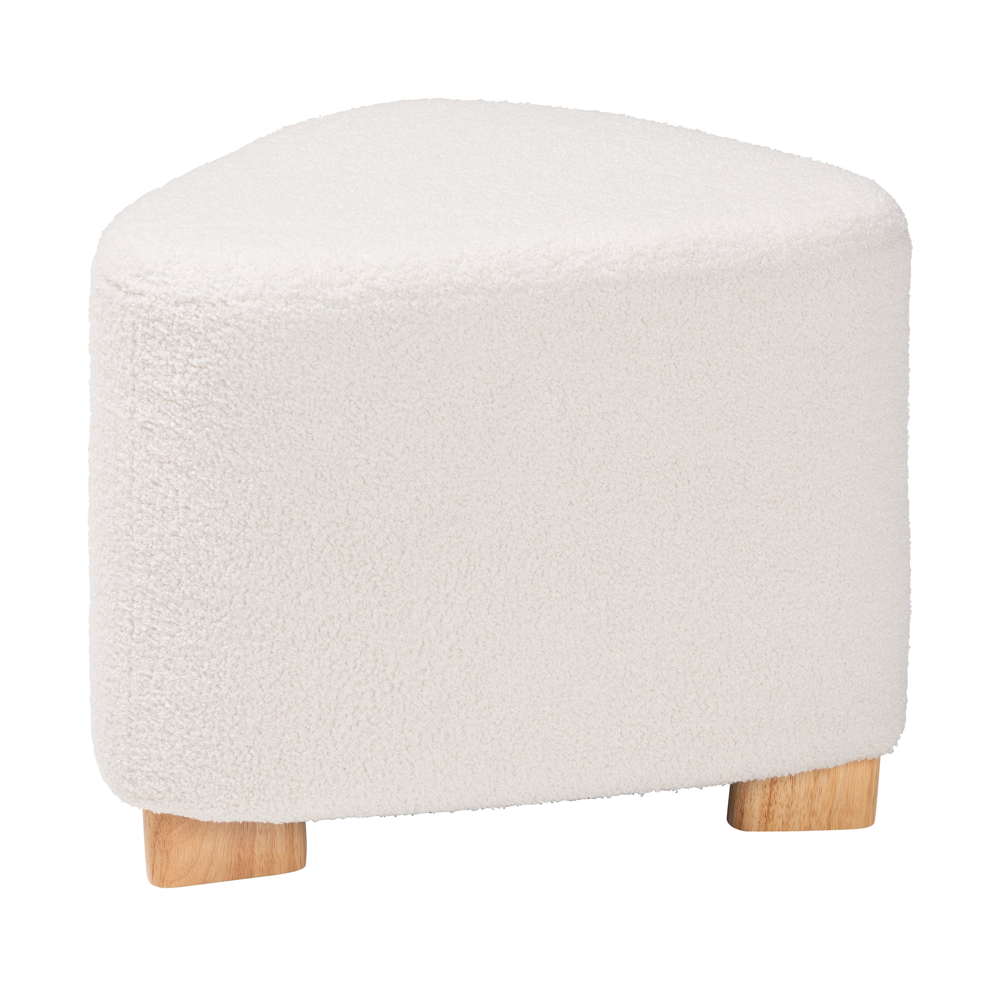 Baxton Studio Brielle Modern and Contemporary Ivory Boucle Upholstered and Natural Brown Finished Wood Ottoman