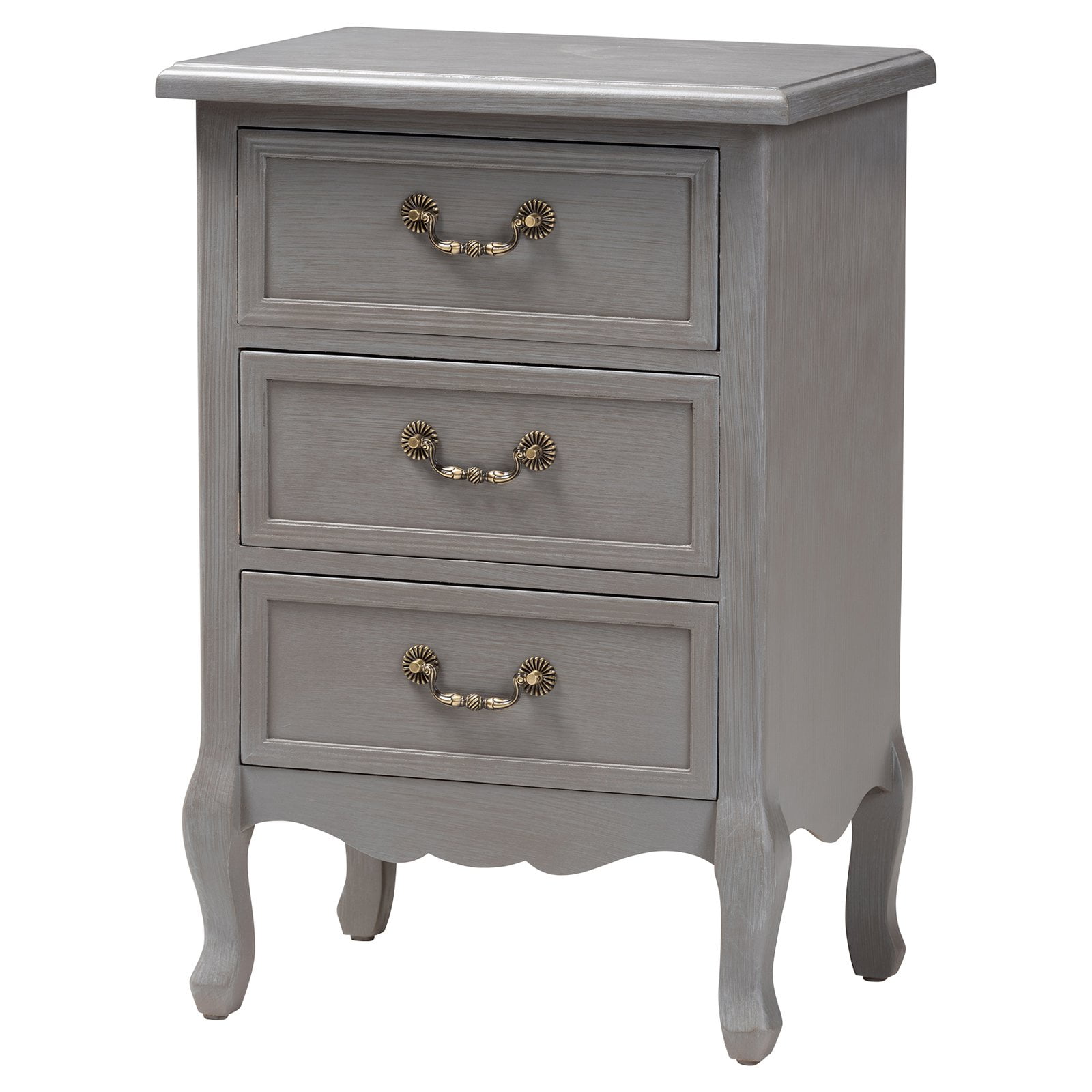 Baxton Studio Capucine Antique French Country Cottage Grey Finished Wood 3-Drawer End Table