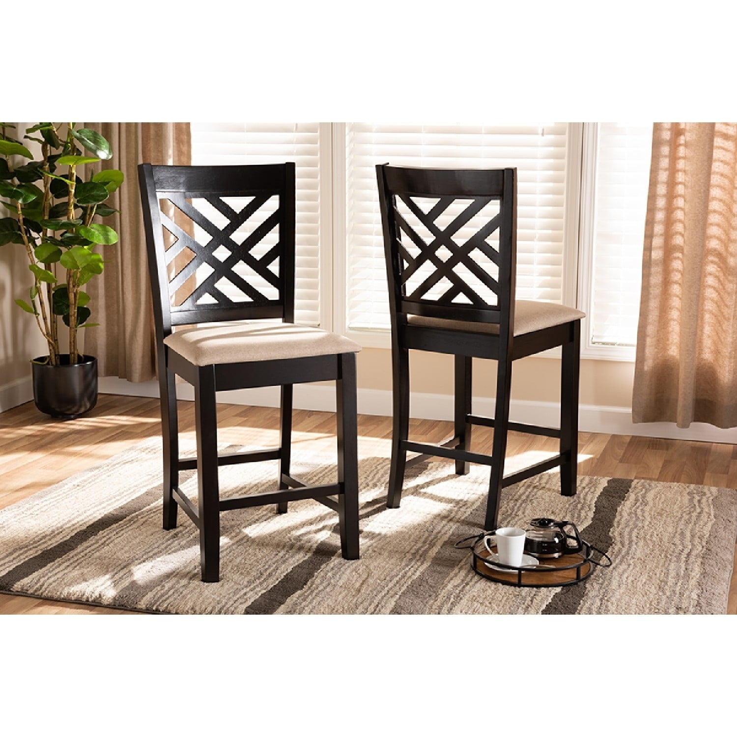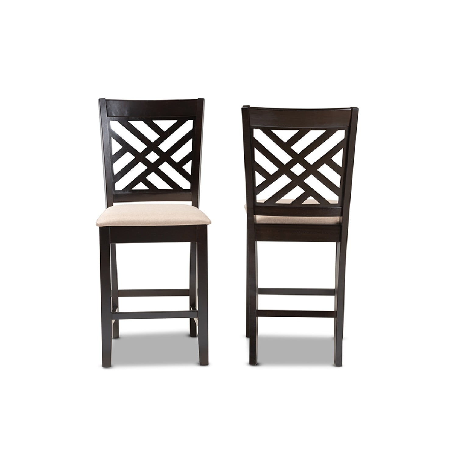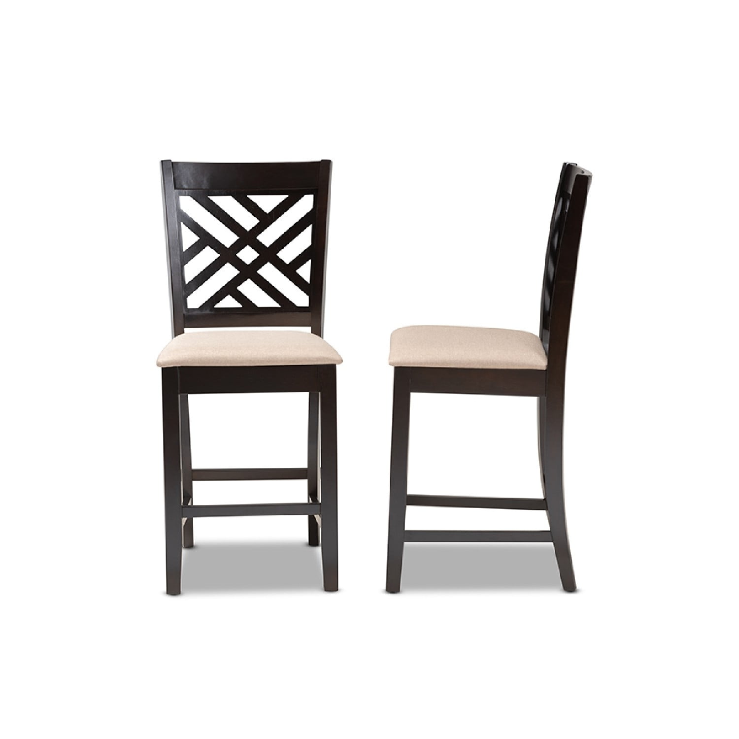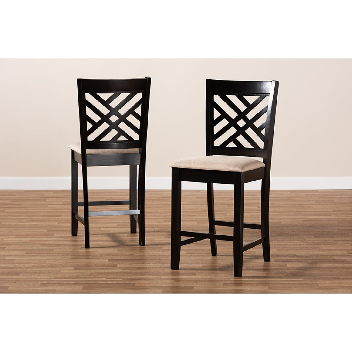 Baxton Studio Caron Modern and Contemporary Sand Fabric Upholstered Espresso Brown Finished Wood Counter Height Pub