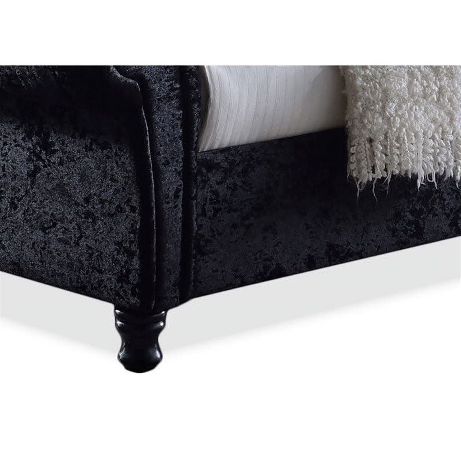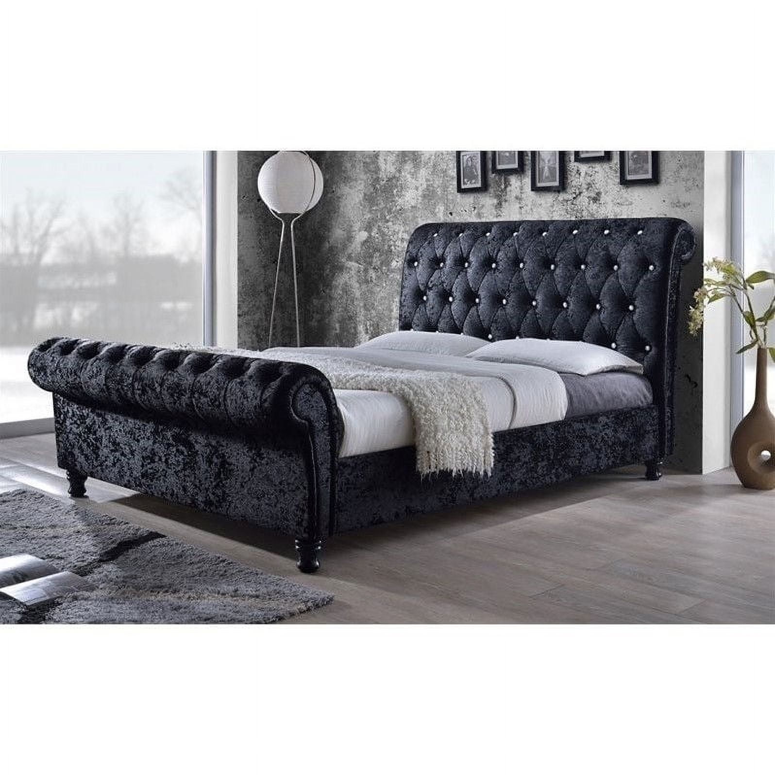 Baxton Studio Castello Black Velvet Upholstered Faux Crystal-Buttoned Sleigh Platform Bed, Queen