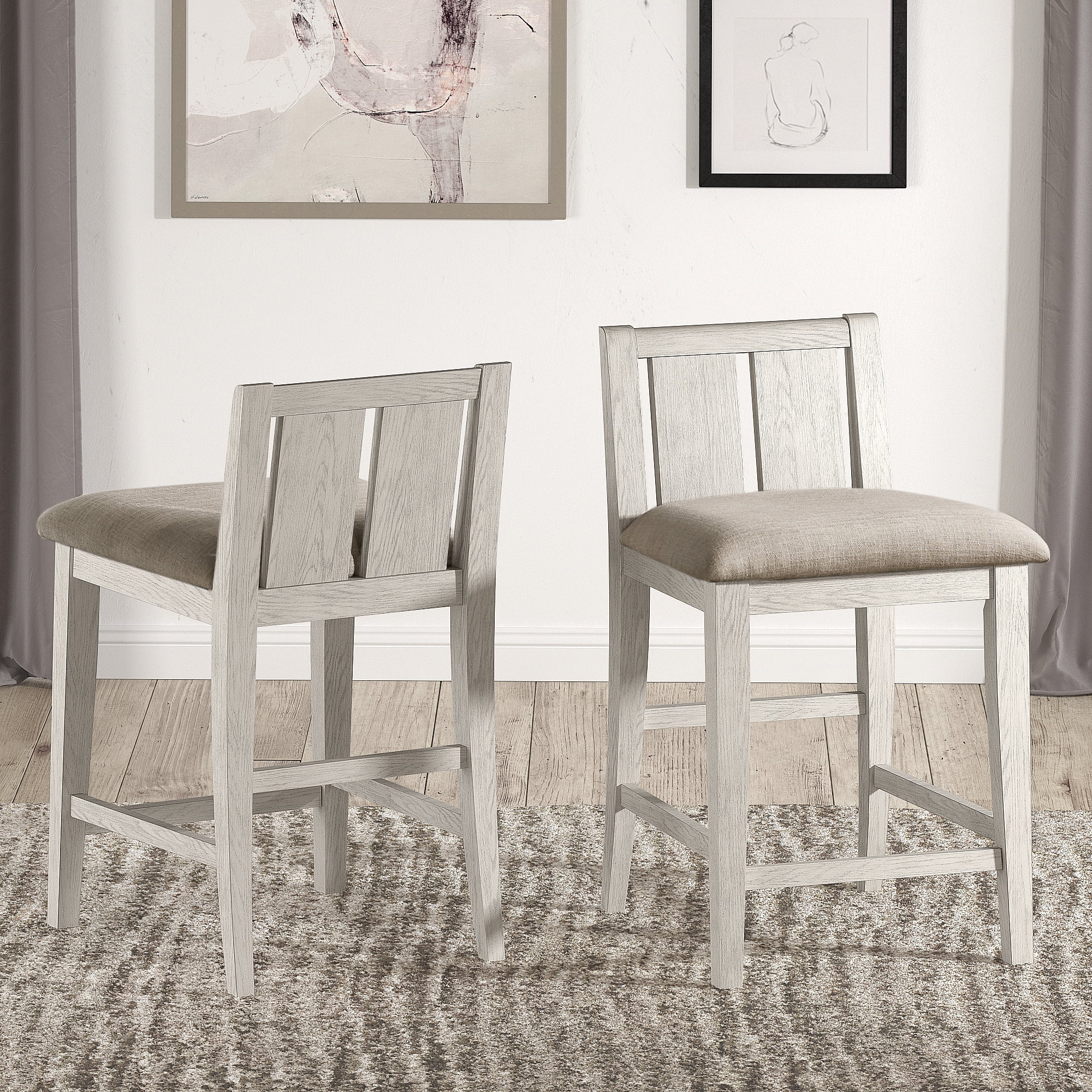 • Set includes two (2) dining chairs • Constructed from oak wood and rubberwood • Walnut brown finish • Upholstered in polyester fabric and padded with foam • Cut-out backrest • Assembly required • Made in Malaysia • Product Weight: 13.2 Pound • Package Weight: 28.7 Pound • Dimensions: 38.6″ High x 18.7″ Wide x 19.3″ Deep; Seat Dimensions: 17.9″ High(From Floor) x 18.7″ Wide x 15.7″ Deep; Back: 19.7″ High; Legs: 16.9″ High; • Product Color: Grey/Walnut Brown • Product Composition: Fabric “Polyester 100%”/Oak/Foam/Rubberwood