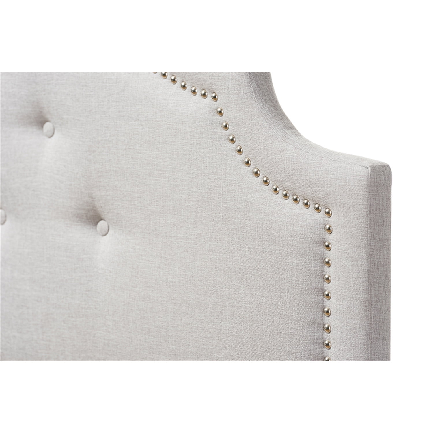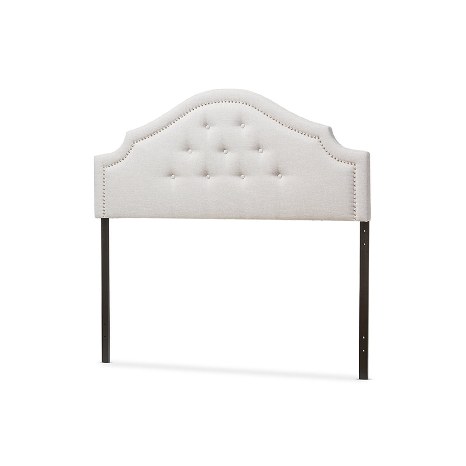 Baxton Studio Cora Modern and Contemporary Grayish Beige Fabric Upholstered Twin Size Headboard,Wholesale Interiors The beautiful curves of the Cora headboard will have you feeling like royalty each and every night. With a nod to classic French design and available in a range of neutral tones, this collection is decadent and utterly divine. The sweeping curves and lush upholstery of the Cora collection reminds us of a candlelight dinner in Paris, both intimate and wonderfully over the top, all at once. For those who seek to add a touch of luxury to their bedroom, the Cora headboard will almost instantly glam up any space with its silver nail heads trim, creating that French-inspired boudoir that you have been dreaming of. Button-tufting design draws the attention of your guests right away! Constructed of solid rubberwood frame and plywood, the headboard is built to last. Soft polyester fabric in grayish beige over the foam filled headboard provides ample comfort for you to lean against. Leg supports are invisible once set up and can be adjusted to suit the height of your ensemble for convenience. Headboard sits between the wall and the ensemble frame, attaching not to the bed base but to the legs, for stability. Made in Malaysia, this twin size headboard requires assembly. Specifications: Modern and contemporary twin size upholstered headboard Curvy shape with silver nail heads trim and button-tufting design for a classy and glamour look Headboard comes with 2 pre-drilled holes (with height from ground up of 5.5″ and 8″) that go with any Leggett and Platt bedframe Upper part on the back of the headboards legs comes with 5 predrilled holes with 2.55″ apart from one another for height adjustment Self-assembly required Made in Malaysia
