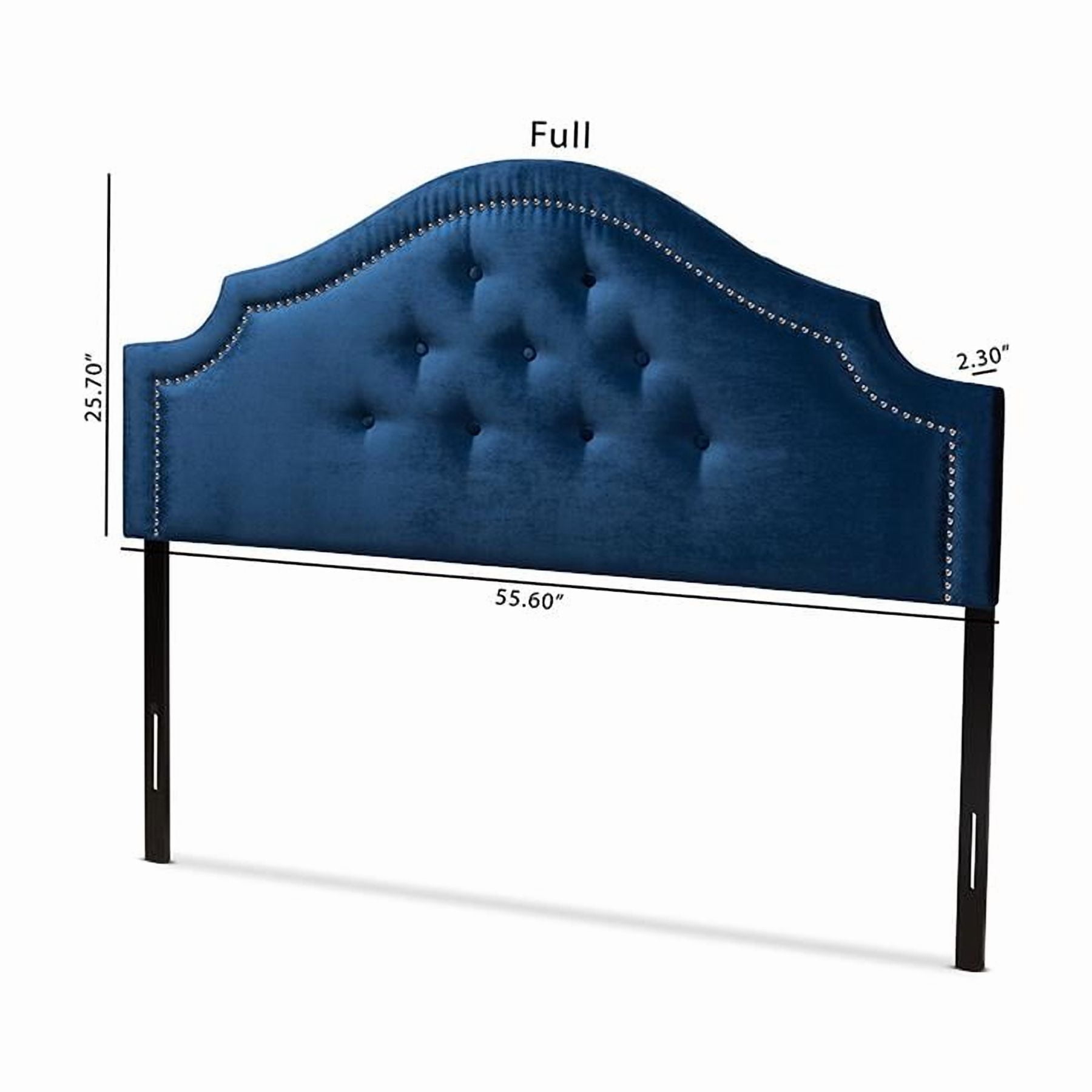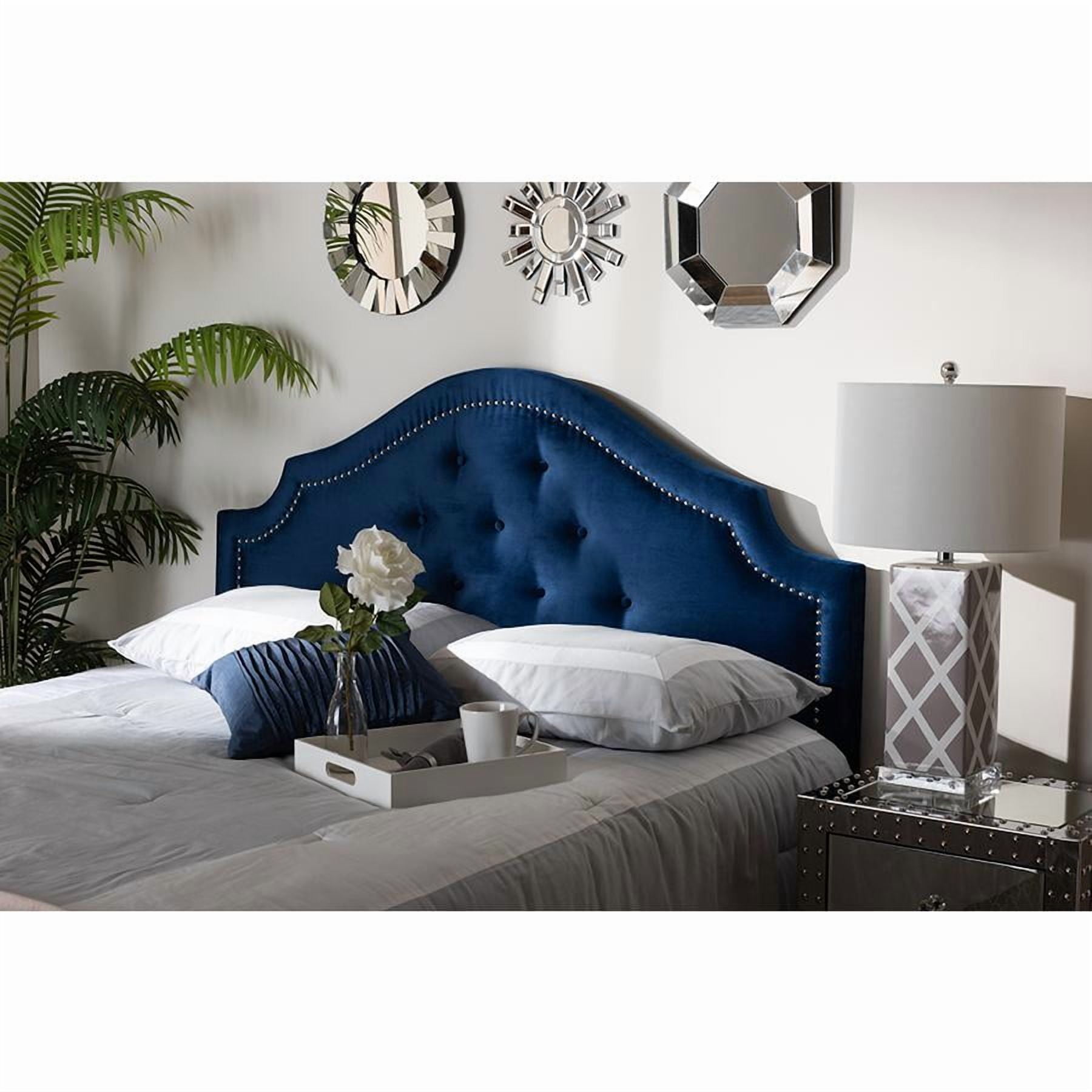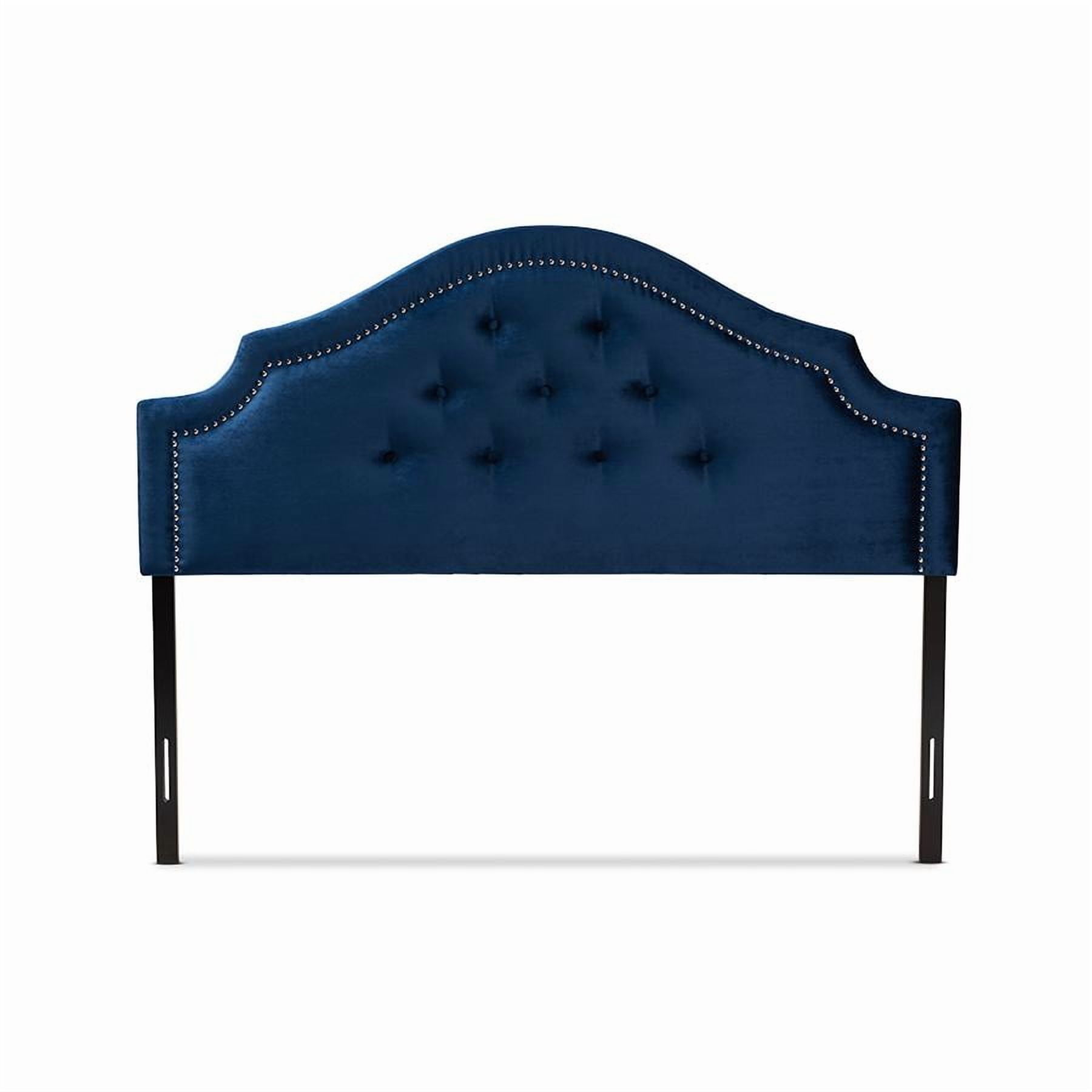 Baxton Studio Cora Modern and Contemporary Royal Blue Velvet Fabric Upholstered Queen Size Headboard,Wholesale Interiors The beautiful curves of the Cora headboard will make you feel like royalty each and every night. Constructed from solid rubberwood and plywood, the Cora is upholstered in a soft, foam filled velvet polyester fabric that provides ample comfort for you to lean against. Button-tufting adds a regal touch. Leg supports are invisible once set up and can be adjusted to suit the height of your ensemble, for convenience. The headboard sits between the wall and the ensemble frame, attaching not to the bed base but to the legs, for stability. The Cora headboard is made in Malaysia and requires assembly. Specifications: Modern and contemporary upholstered headboard Curved shape with button tufting and silver nailhead trim for a glamorous look Headboard comes with 2 pre-drilled holes (with height from ground up of 5.5″ and 8″) that go with any Leggett and Platt bedframe Upper part on the back of the headboards legs comes with 5 predrilled holes with 2.55″ apart from one another for height adjustment Constructed from rubberwood and plywood Velvet polyester fabric Assembly required