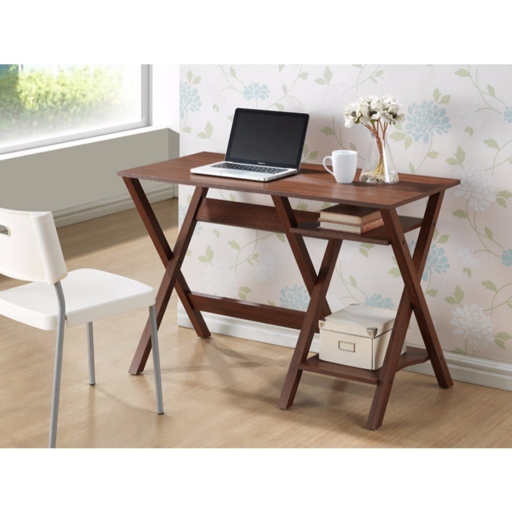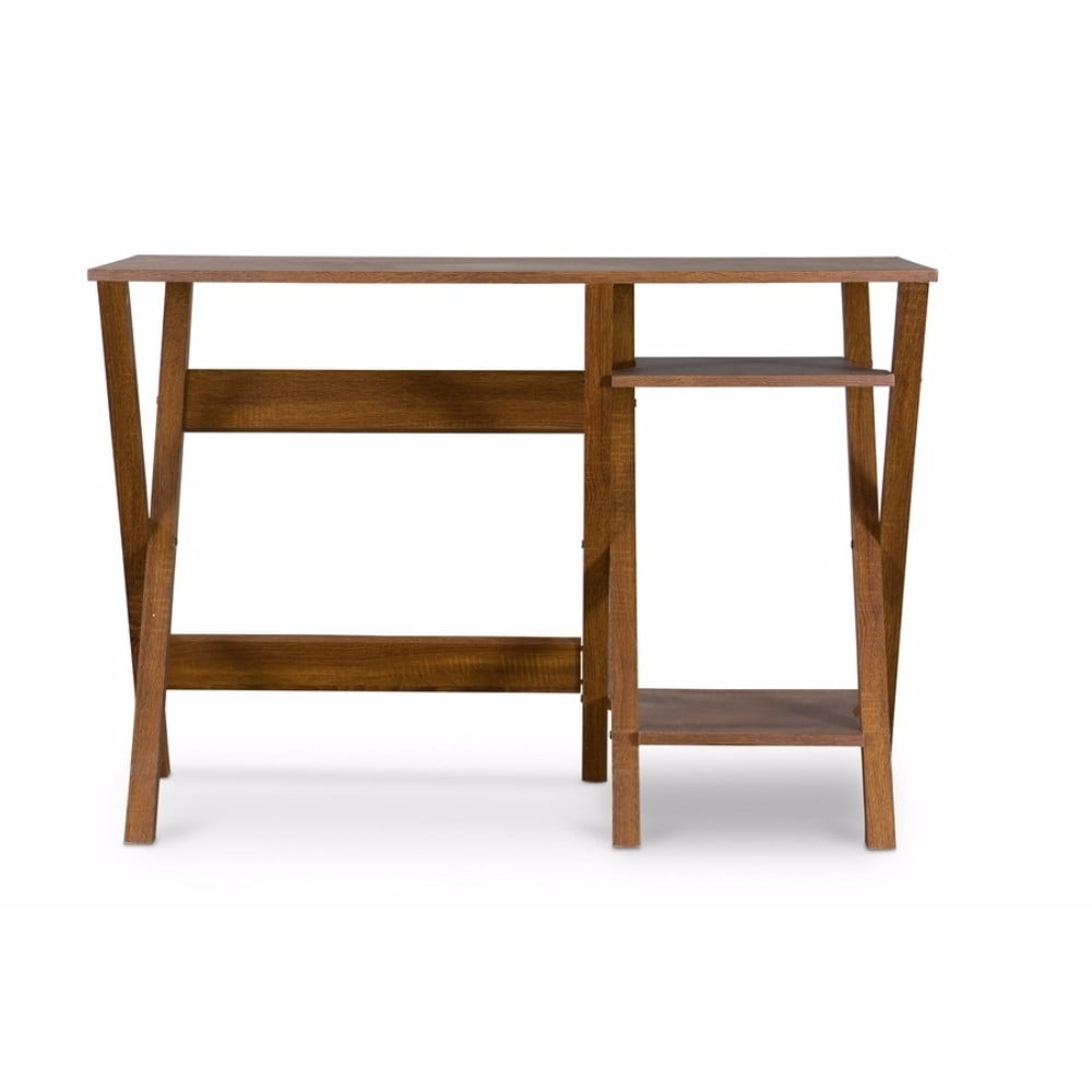 Sonoma Oak Polyurethane-Veneer Finish Modern and Compact Writing Desk Cross-Leg Design