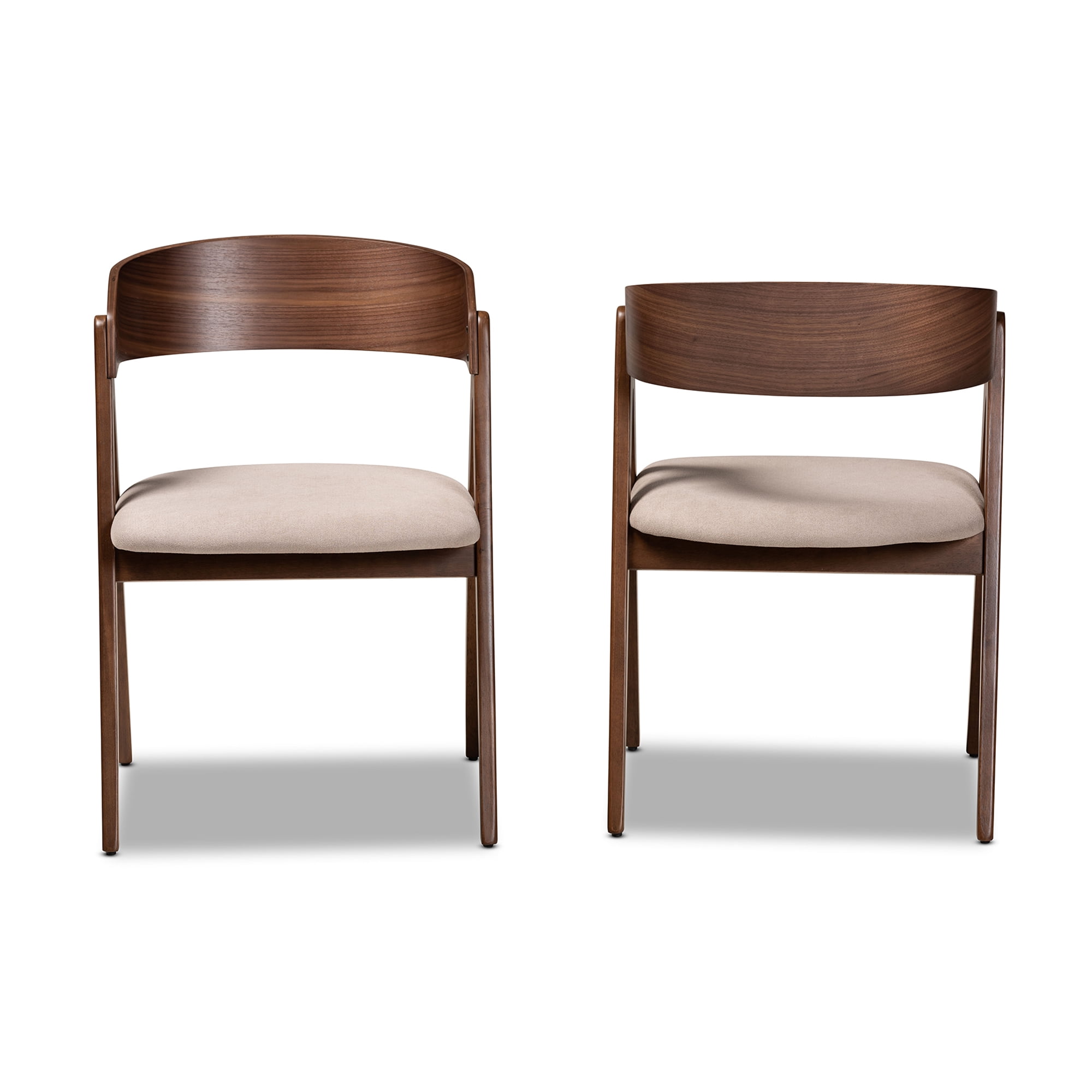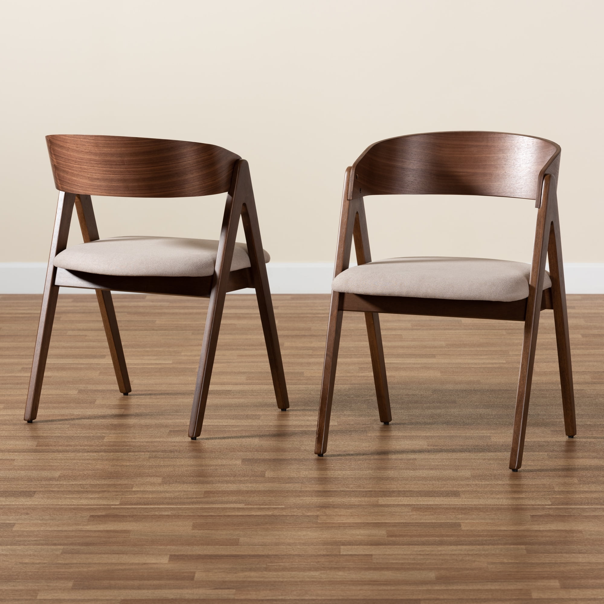 Baxton Studio Danton Dining Chair, Set of 2, Beige/Walnut Brown