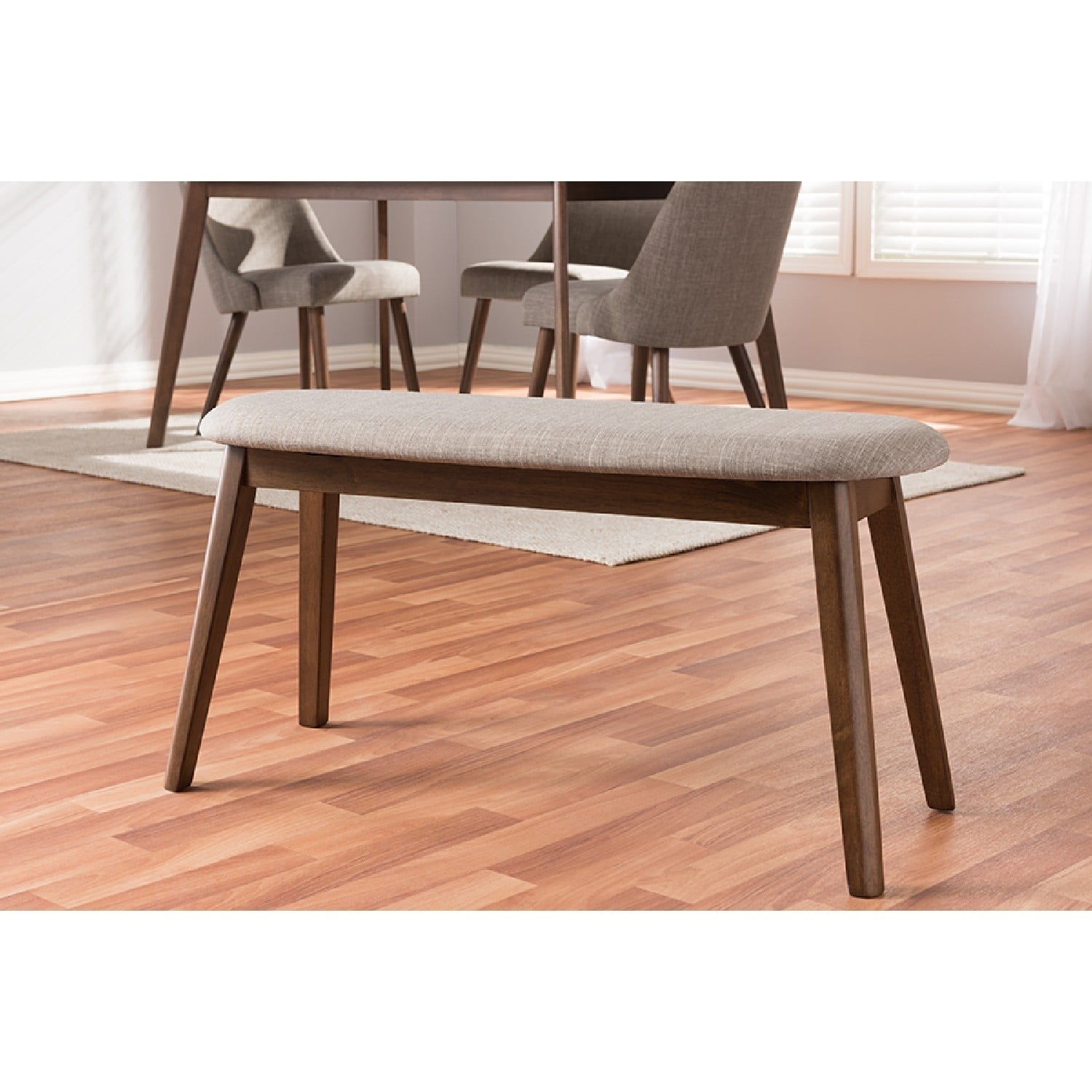 Baxton Studio Easton Mid-Century Modern Light Grey Fabric Upholstered Walnut Finished Wood Bench Minimalist and refined, the Easton bench is the final piece of furniture youve been needing to tie your room together. The mid-century modern-inspired design is evident in the gracefully tapered, angled legs of the bench. The Easton is made to last with a sturdy, solid walnut-finished rubberwood frame. The bench top is foam-padded for comfortable seating, and upholstered in a chic light grey fabric. This dynamic bench will look fantastic at your dining table, or even in your living room and other shared spaces. Made in Malaysia, the Easton requires assembly. Specifications: Mid-century modern bench Light grey fabric upholstery Solid rubberwood, walnut-finished frame Angled tapered legs Foam padded Assembly required Made in Malaysia