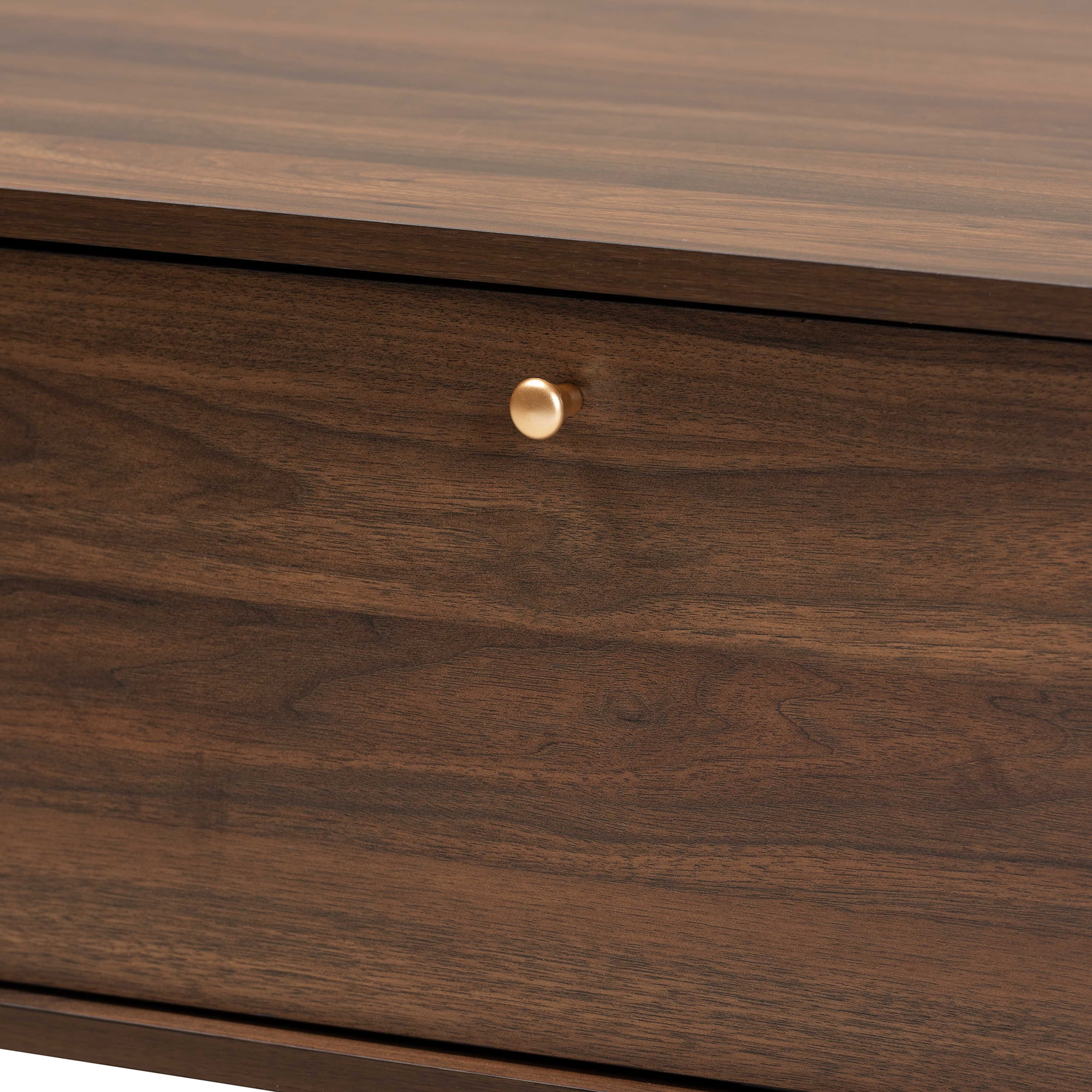 Baxton Studio Edel Mid-Century Modern Walnut Brown and Gold Finished Wood Coffee Table