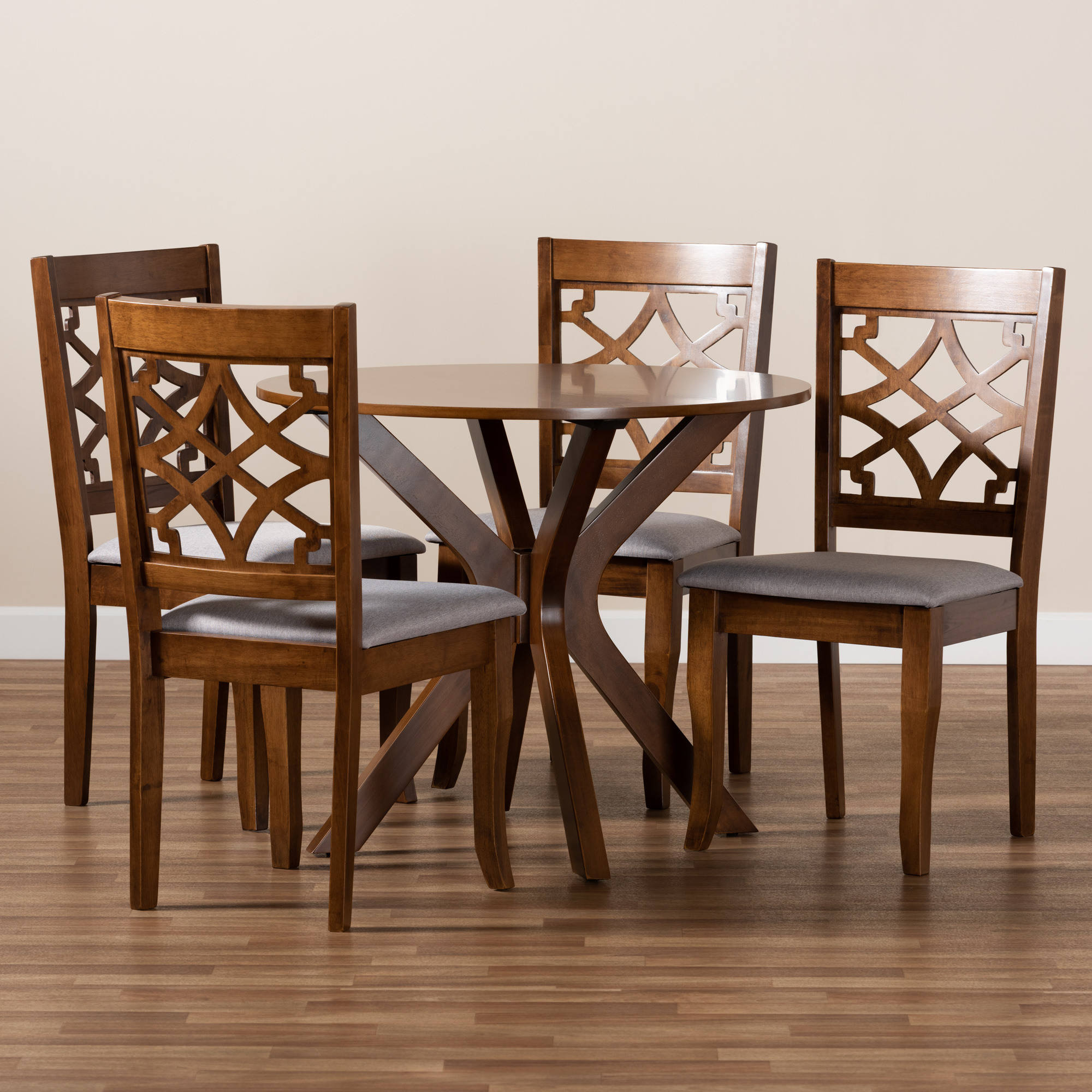 Baxton Studio Elena Modern and Contemporary Grey Fabric Upholstered and Walnut Brown Finished Wood 5-Piece Dining Set