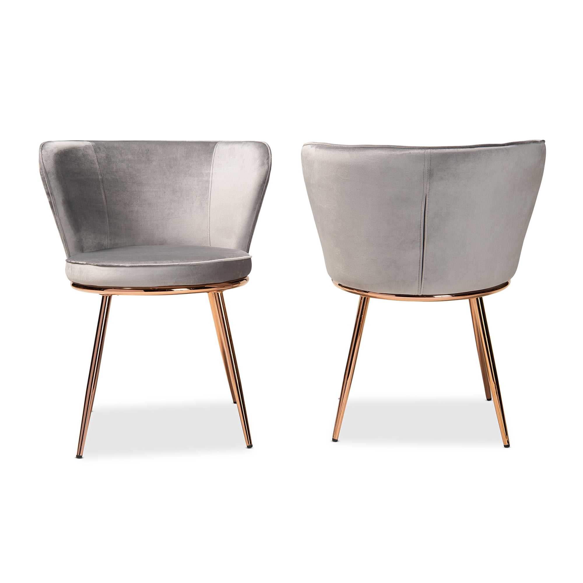 Baxton Studio Farah Dining Chair, Set of 2, Grey/Rose Gold