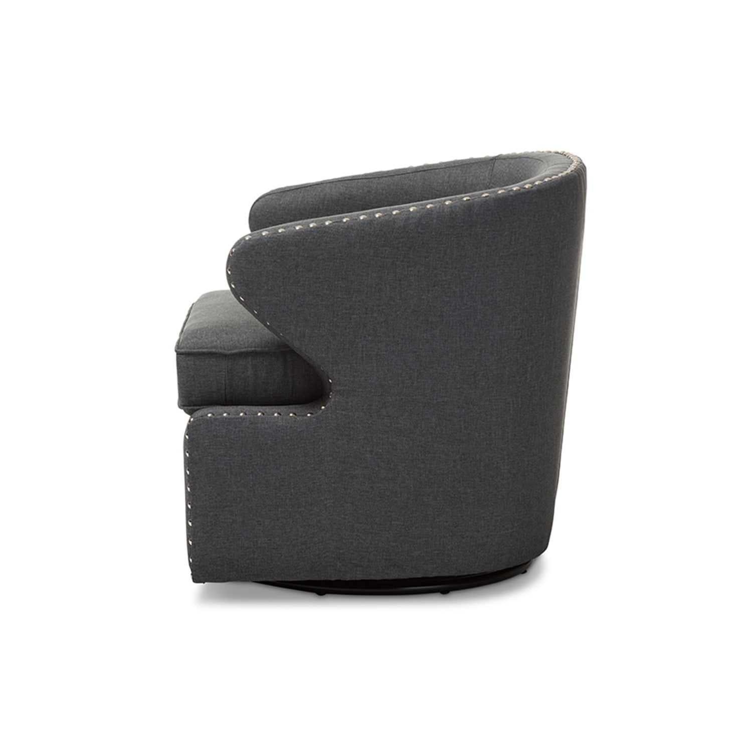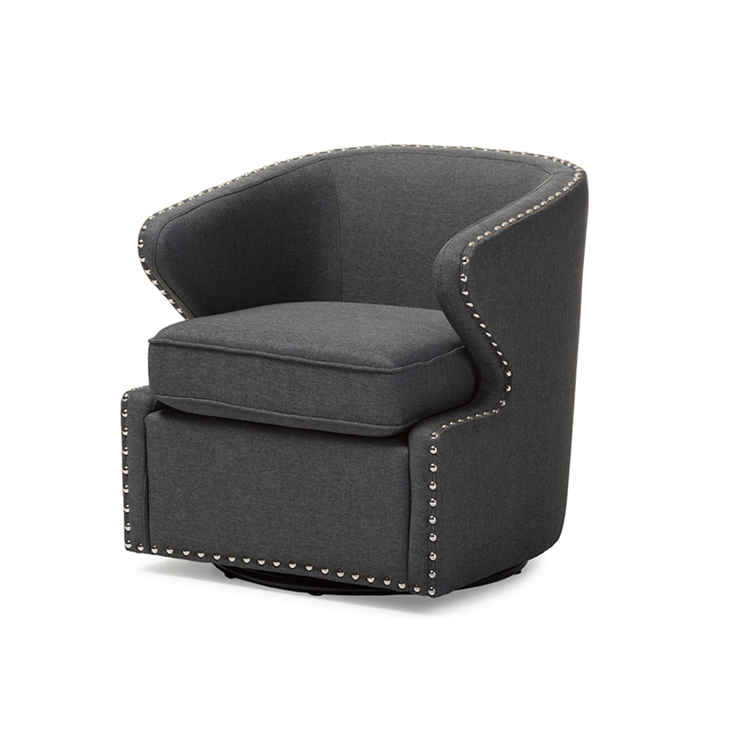 Baxton Studio Finley Mid-century Modern Beige Fabric Upholstered Swivel Armchair Crafted from the ground up, the Finley armchair was intentionally designed to be a piece that reflected classical shapes, offering a comforting feel of the familiar, while also challenging design concepts with it’s angular armrests, edge piping and silver nail heads trim. Featuring swivel base, the Finley armchair is constructed of solid wood frame and is upholstered in beige polyester fabric. Imbuing a sense of mid-century retro modern design, the Finley armchair will work well with your modern home decor. Made in China, the swivel armchair requires minor assembly. Mid-century modern design swivel chair Upholstered in beige polyester upholstery Angular armrests Foam padded for extra comfort Swivel turn plate Assembly required – Material: Fabric “Dacron 100%”/Foam/Wood “Eucalyptus” – Number of Pieces: 1 – Seat Width: 18.72 – Series: Finley – Style: Mid-Century – Includes: One (1) Living Room Chair – Seat Height: 17.55 – Item Depth: 25.74 – Item Height: 27.3 – Item Width: 26.91 – Item Weight: 62.7 – Care Instruction: Spot clean only – Item Dimensions: 26.91W x 25.74D x 27.3H – General Color: Beige – Fire Retardants: None – Vendor Color: Beige