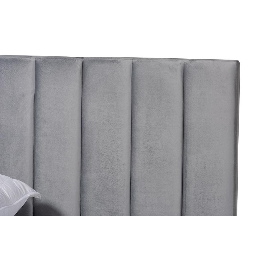 Baxton Studio Fiorenza Glam Engineered Wood Tufted Panel Bed, King, Grey/Black