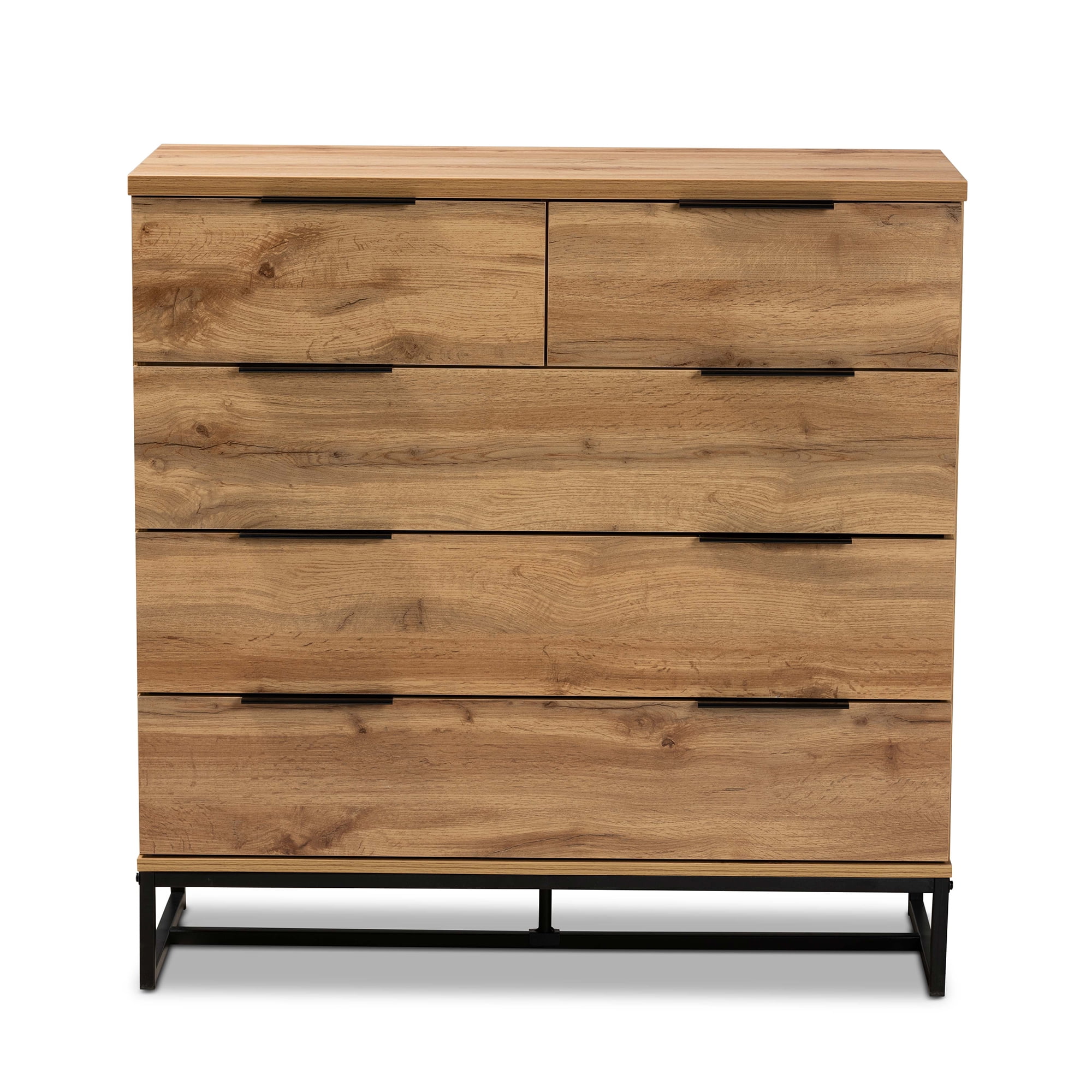 Baxton Studio Franklin Modern and Contemporary Oak Finished Wood and Black Finished Metal 5-Drawer Bedroom Chest
