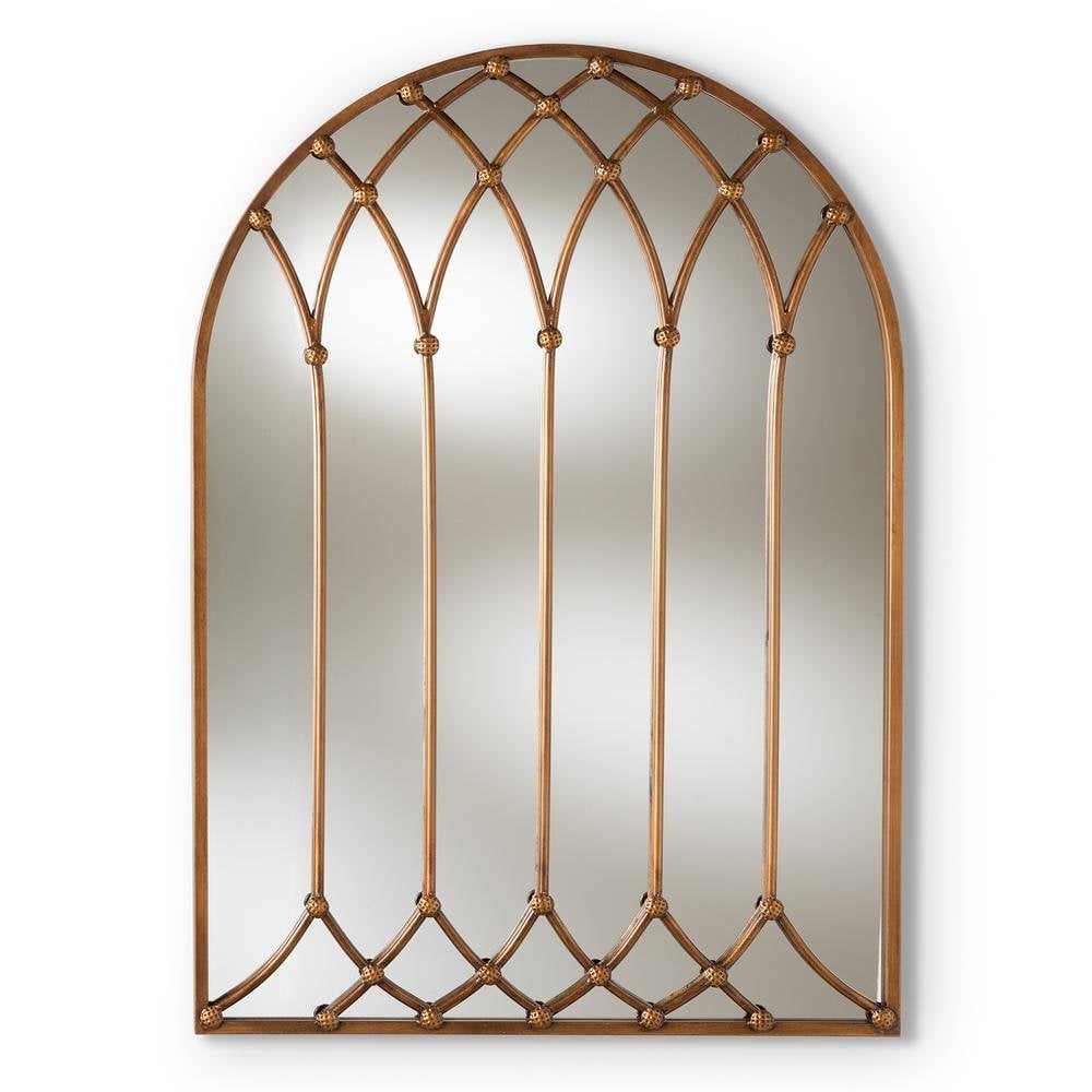 Baxton Studio Freja Vintage Farmhouse Antique Bronze Finished Arched Window Accent Wall Mirror