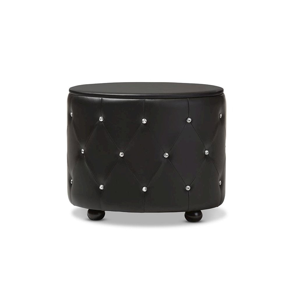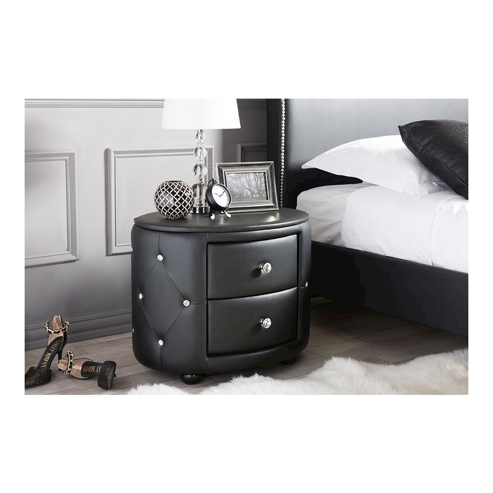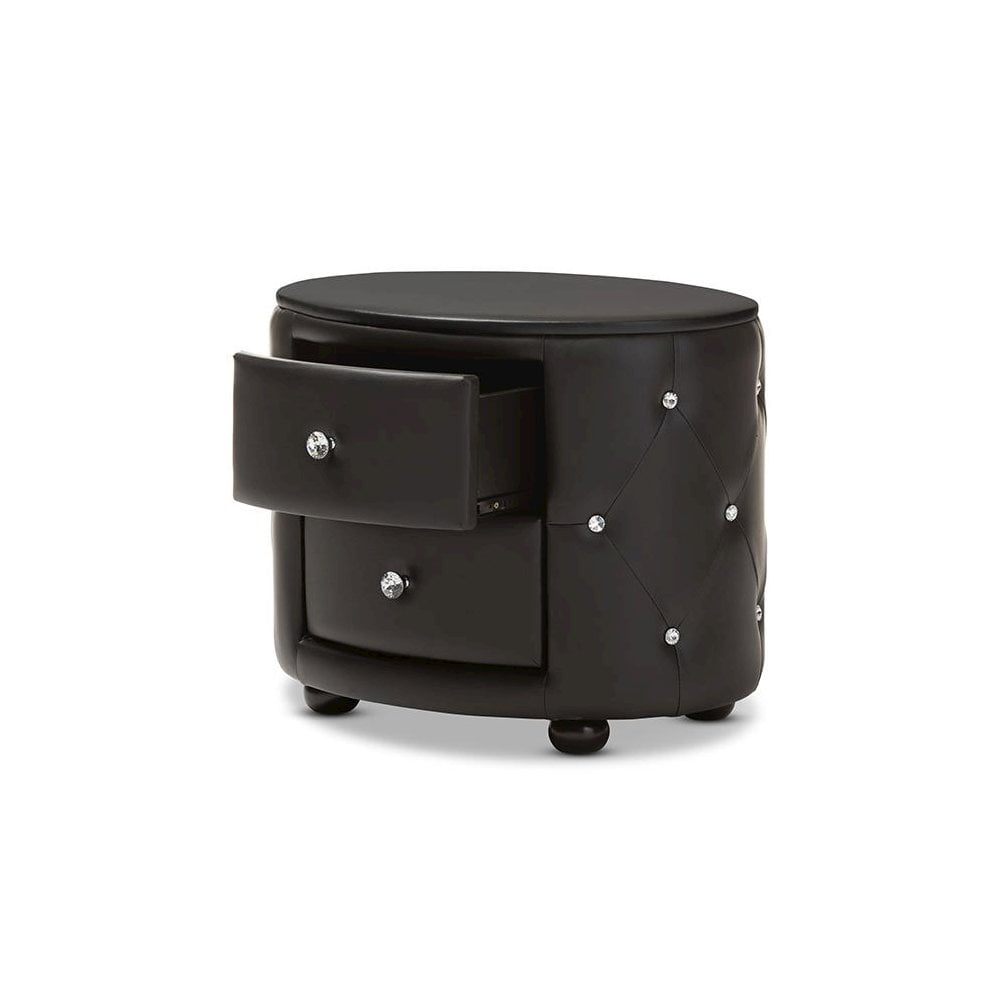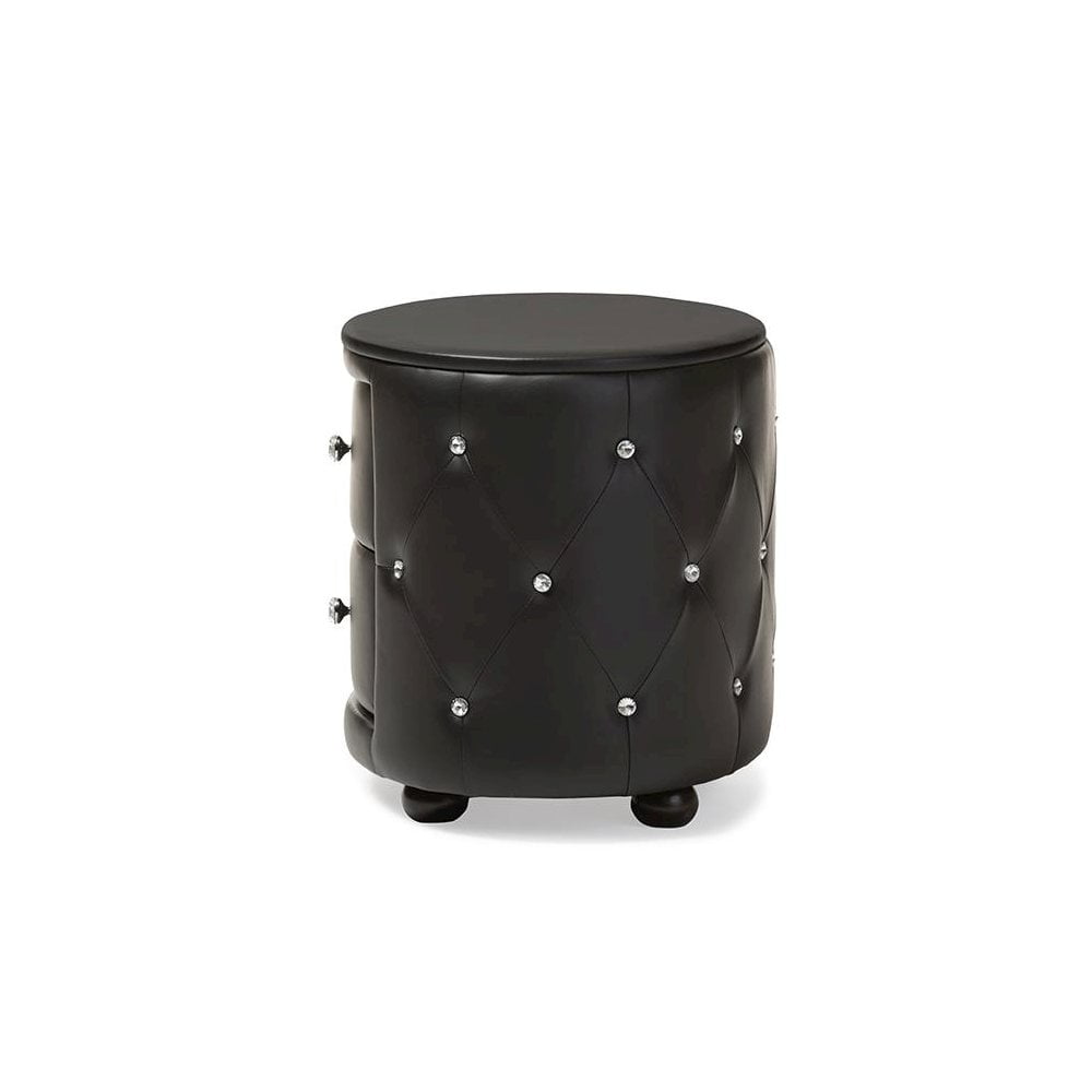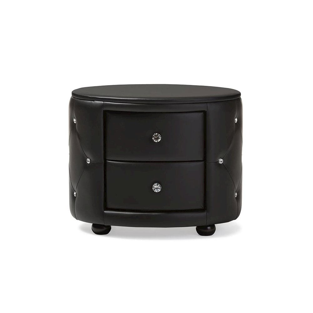 Baxton Studio Glamour Style Oval 2-drawer Black Faux Leather Upholstered Nightstand