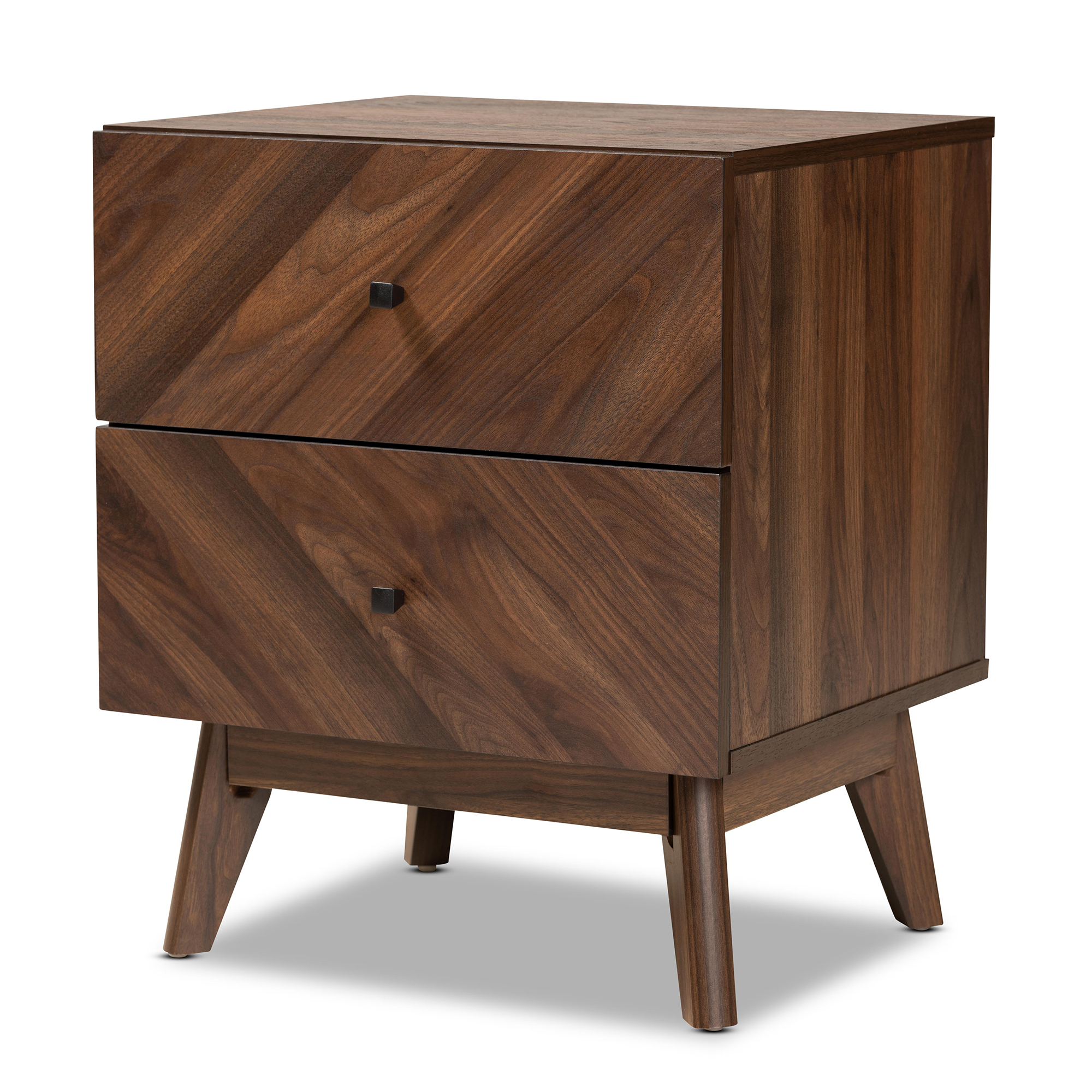 Baxton Studio Hartman Mid-Century Modern Walnut Brown Finished Wood 2-Drawer Nightstand