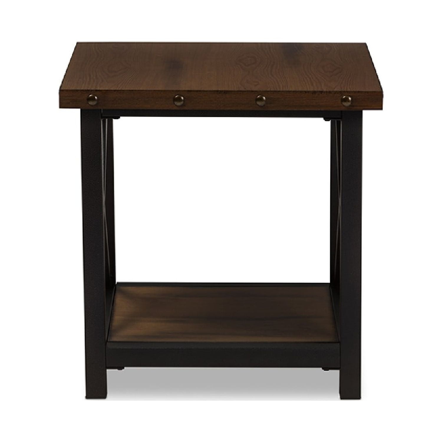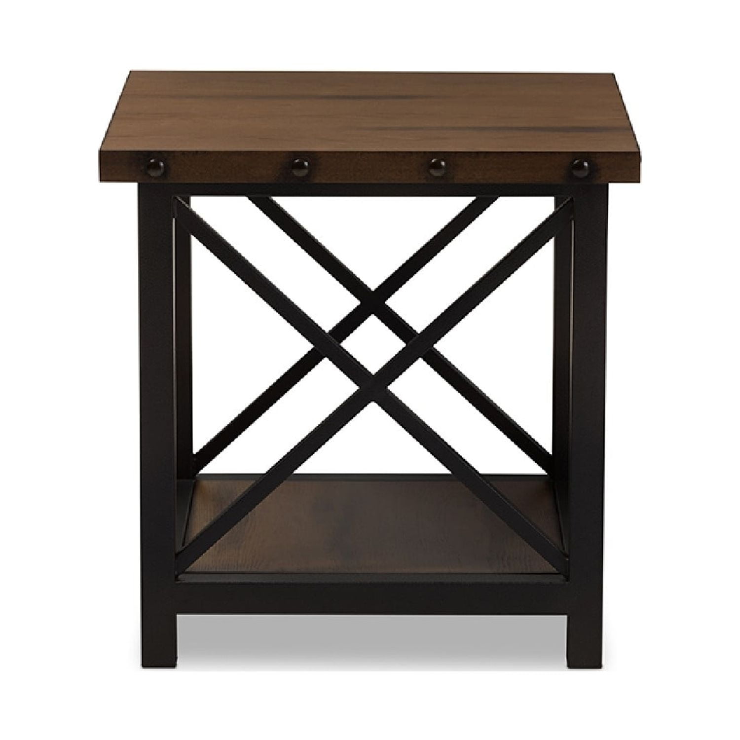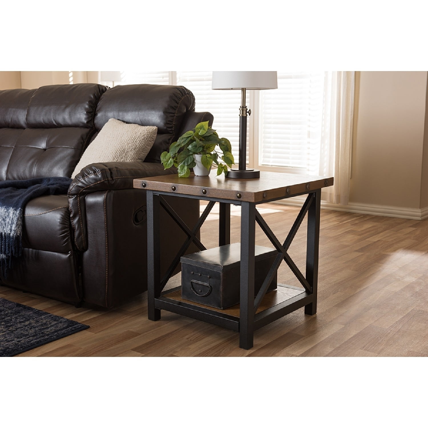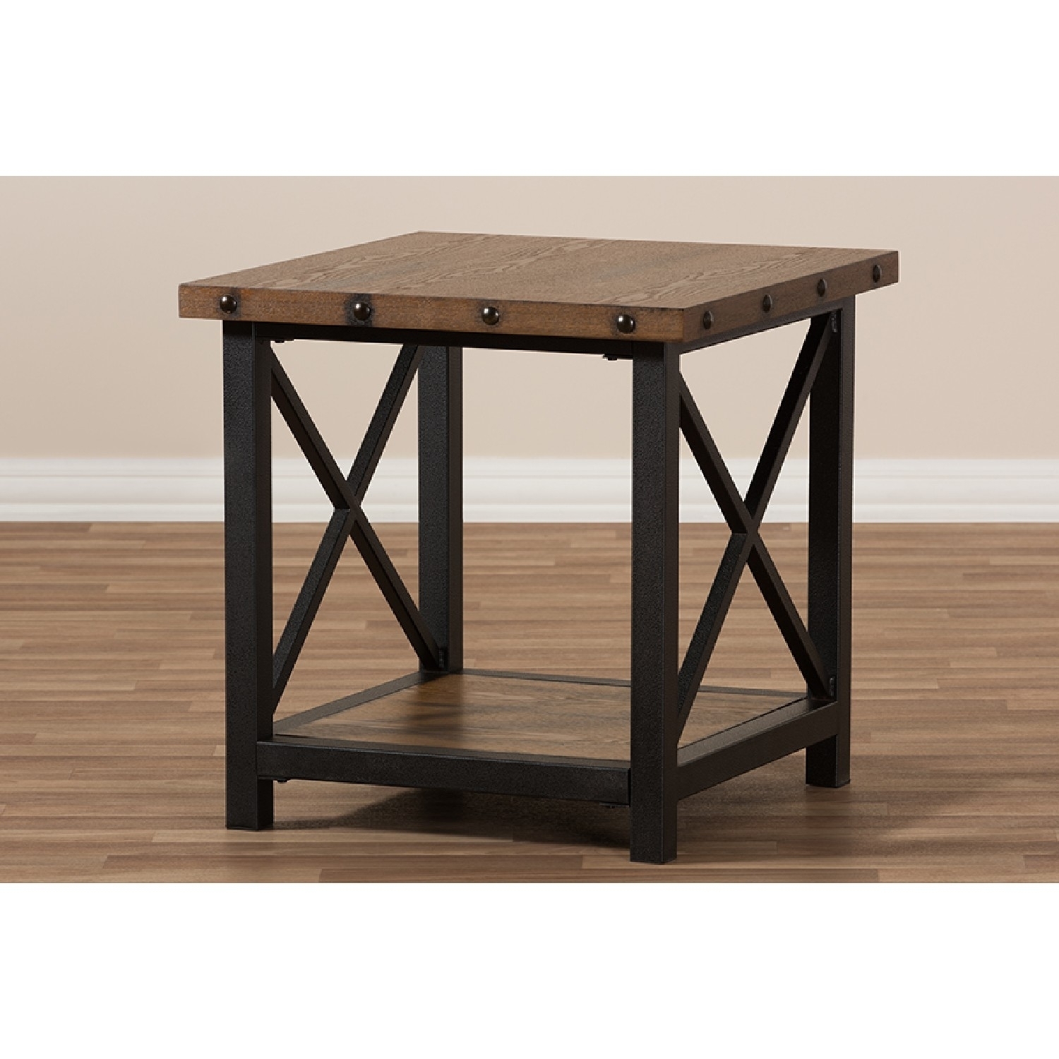 Baxton Studio Herzen Rustic Industrial Style Antique Black Textured Finished Metal Distressed Wood Occasional End Table Marrying simple lines with industrial textures, the Herzen occasional end table is an end table at the height of rustic luxe. Antique black textured finished metal and distressed wood make this effortlessly chic side table your new living room staple. Featuring metal frame with X-shape design and antique decorative nail heads, the Herzen comes with one fixed shelf for the storage of magazines, books and controllers. When it comes to industrial style furniture, rich textures of metal combined with distressed wood are at the bedrock of this look, and this occasional end table is the perfect foundation piece for any industrial-inspired room. Made in China, the Herzen requires assembly. Specifications: Vintage industrial rustic design cocktail end table Antiqued black finished textured metal frame Decorative nail heads trim on table top Number of shelves: one, fixed Assembly required Made in China