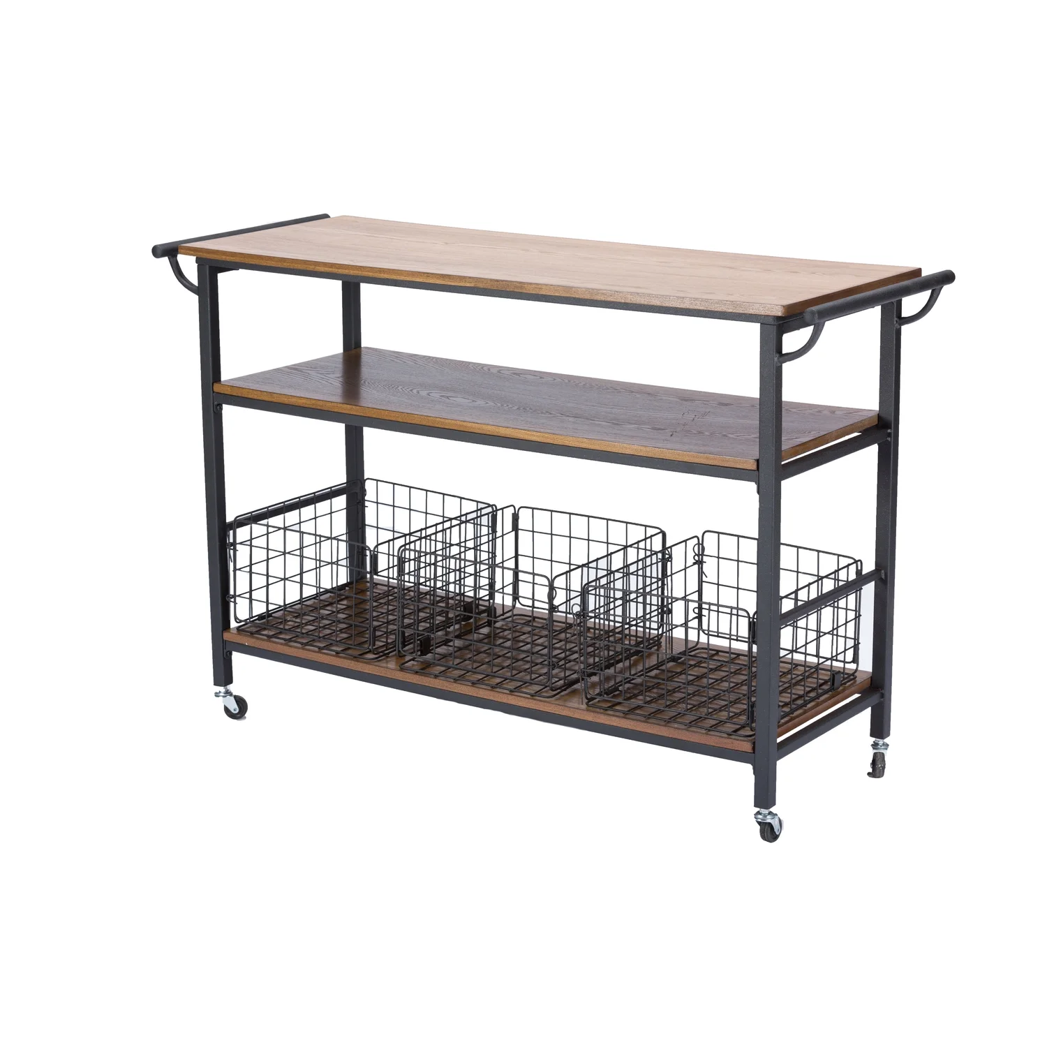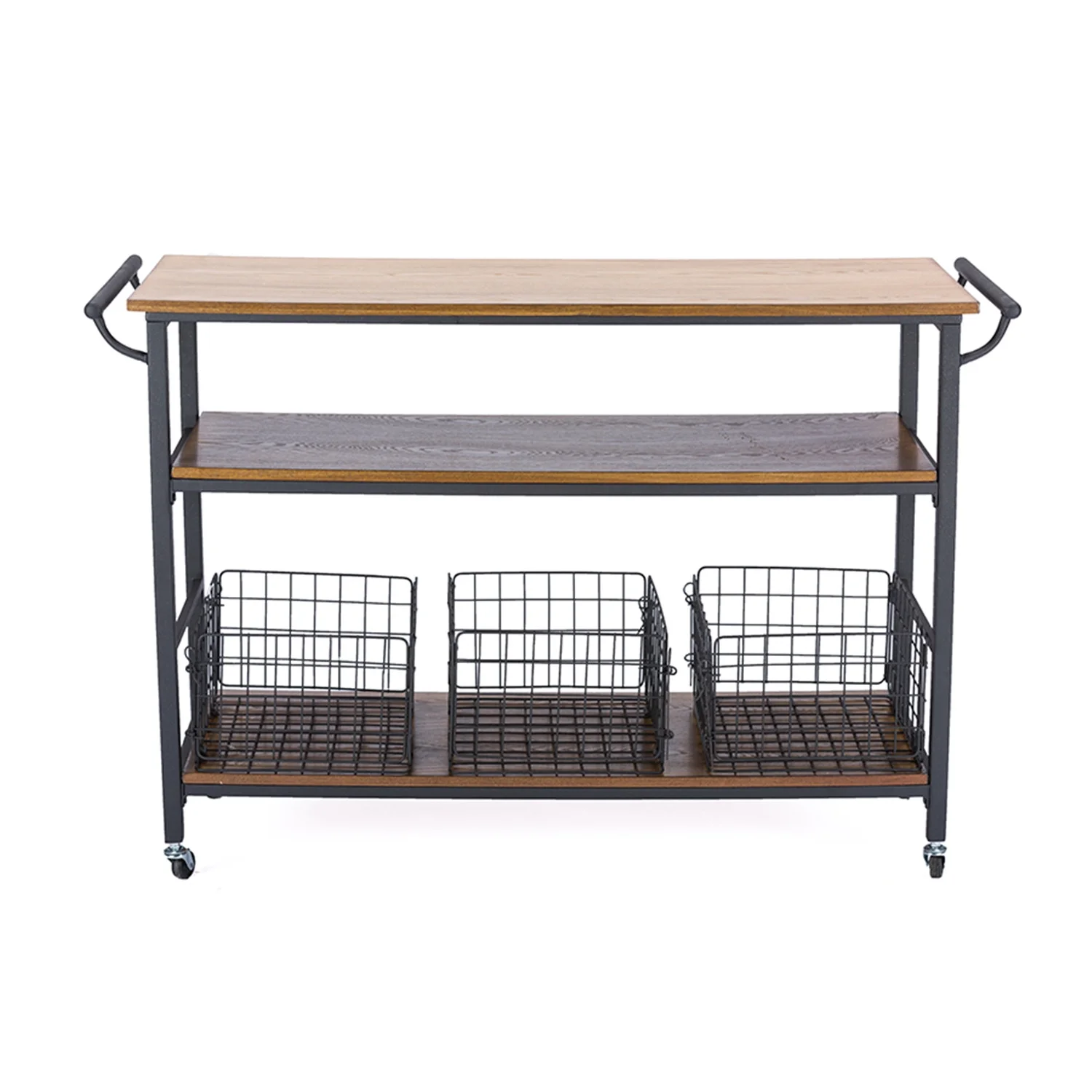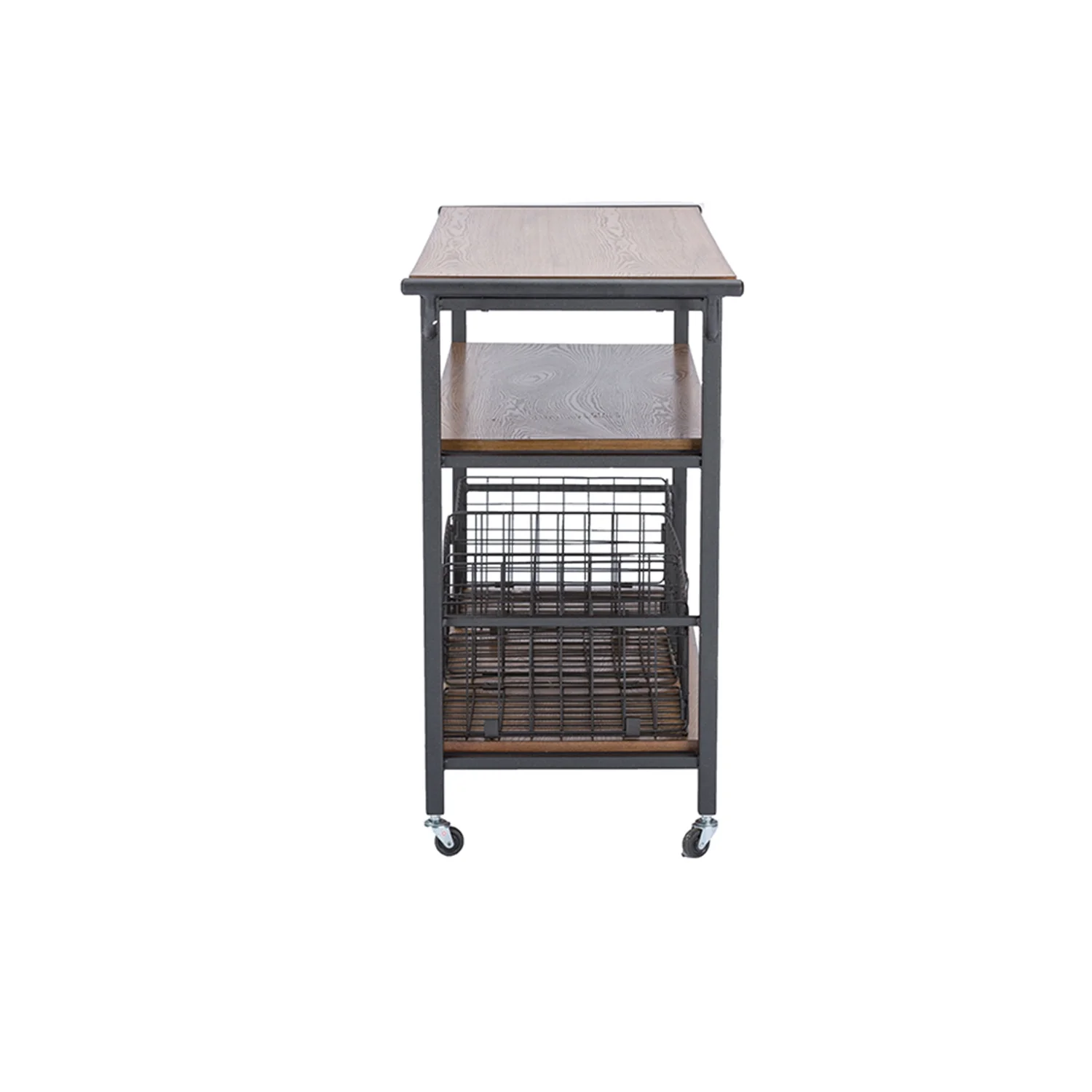 Baxton Studio Lancashire Brown Wood & Metal Kitchen Cart