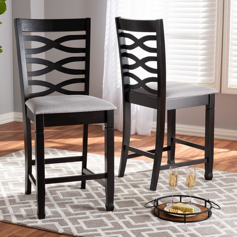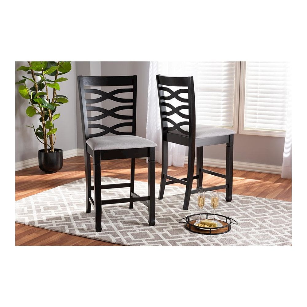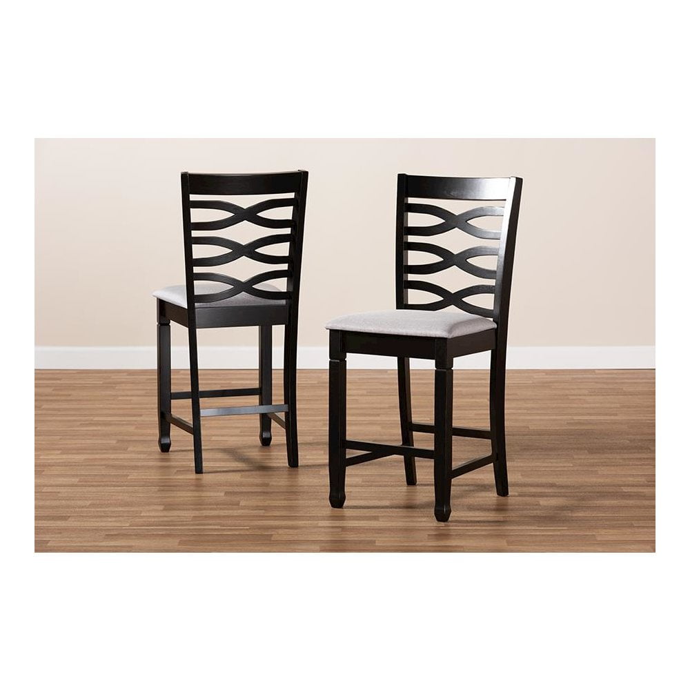 Baxton Studio Lanier Modern and Contemporary Gray Fabric Upholstered Espresso Brown Finished Wood Counter Height Pub Chair Set (Set of 2)