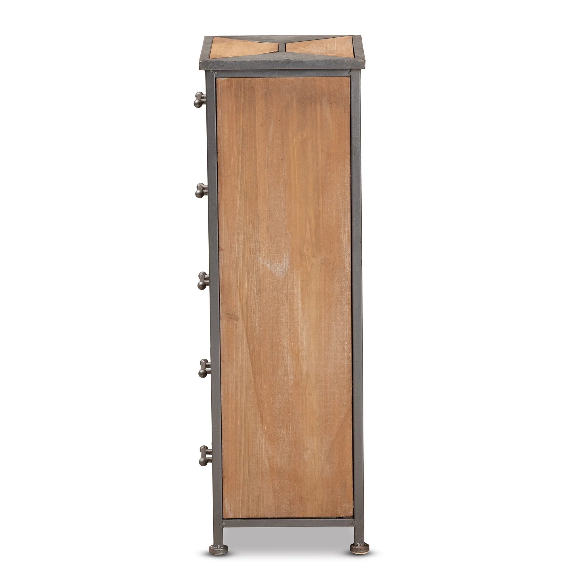 Baxton Studio Laurel Rustic Industrial Antique Grey Finished Metal and Whitewashed Oak Brown Finished Wood 5-Drawer Accent Storage Cabinet