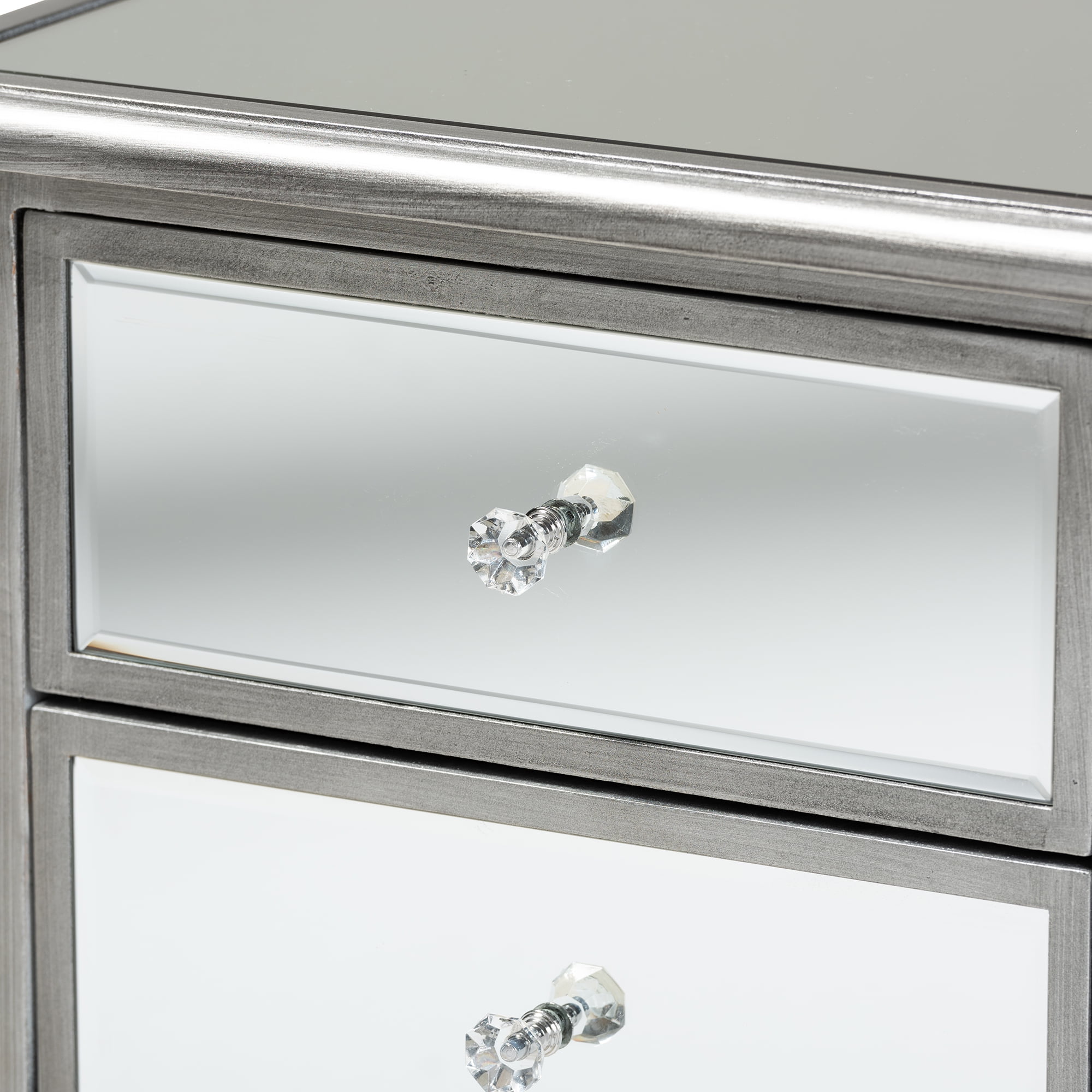 Baxton Studio Leonie Modern Transitional French Brushed Silver Finished Wood and Mirrored Glass 2-Drawer End Table