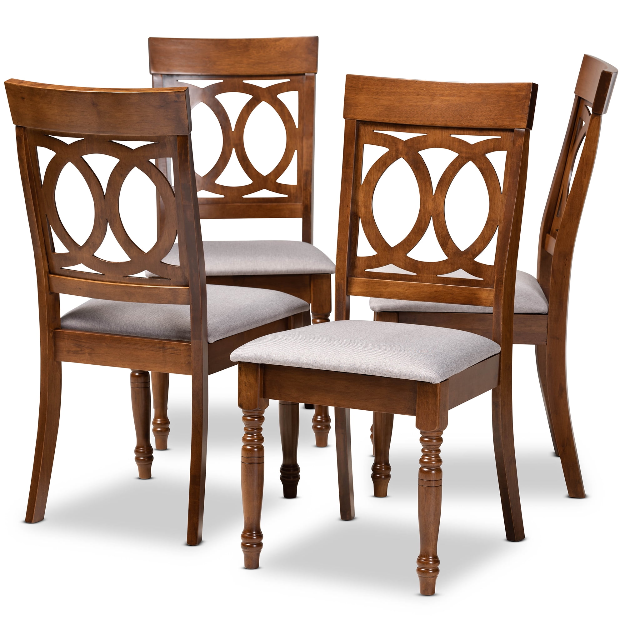Baxton Studio Lucie Modern and Contemporary Grey Fabric Upholstered and Walnut Brown Finished Wood 4-Piece Dining Chair Set