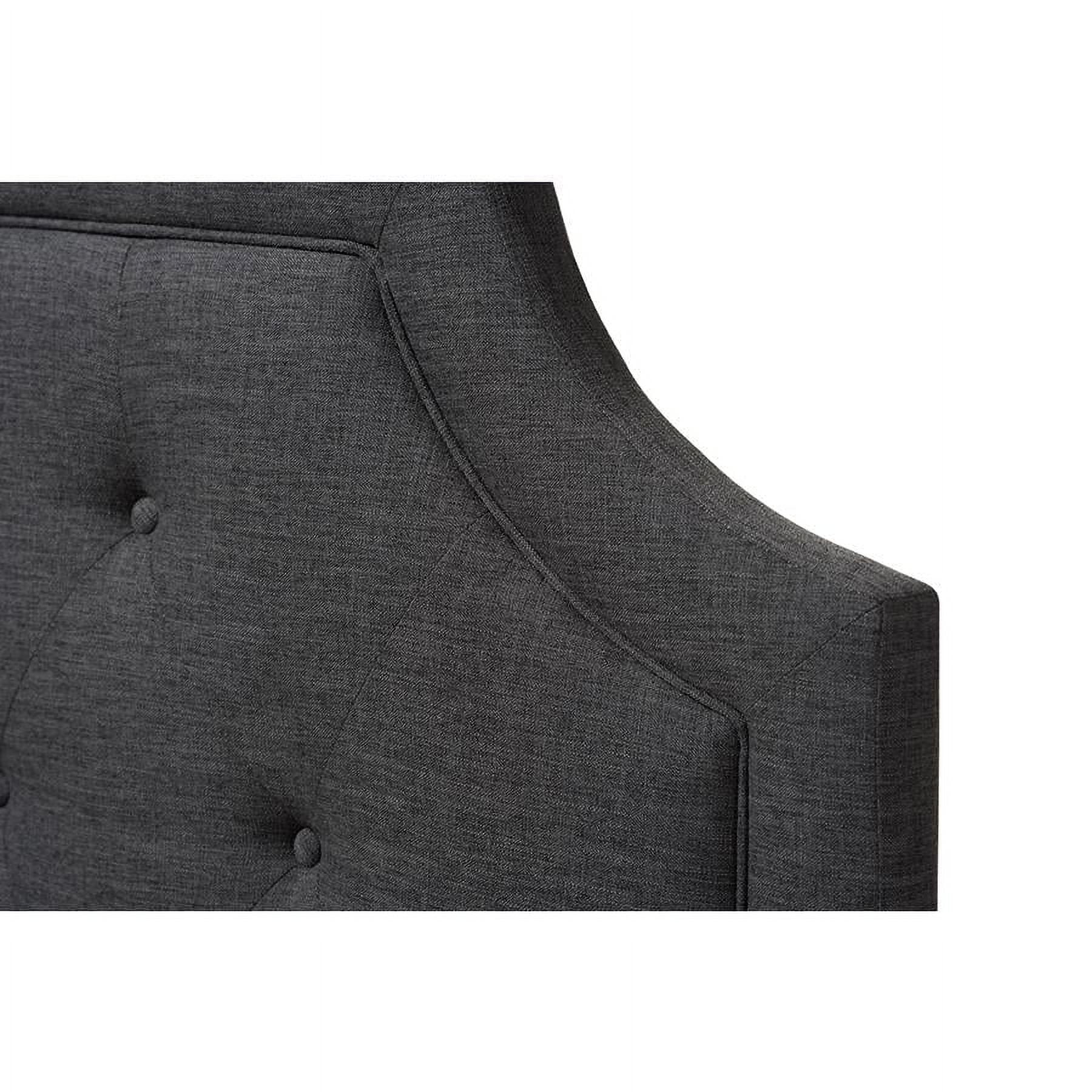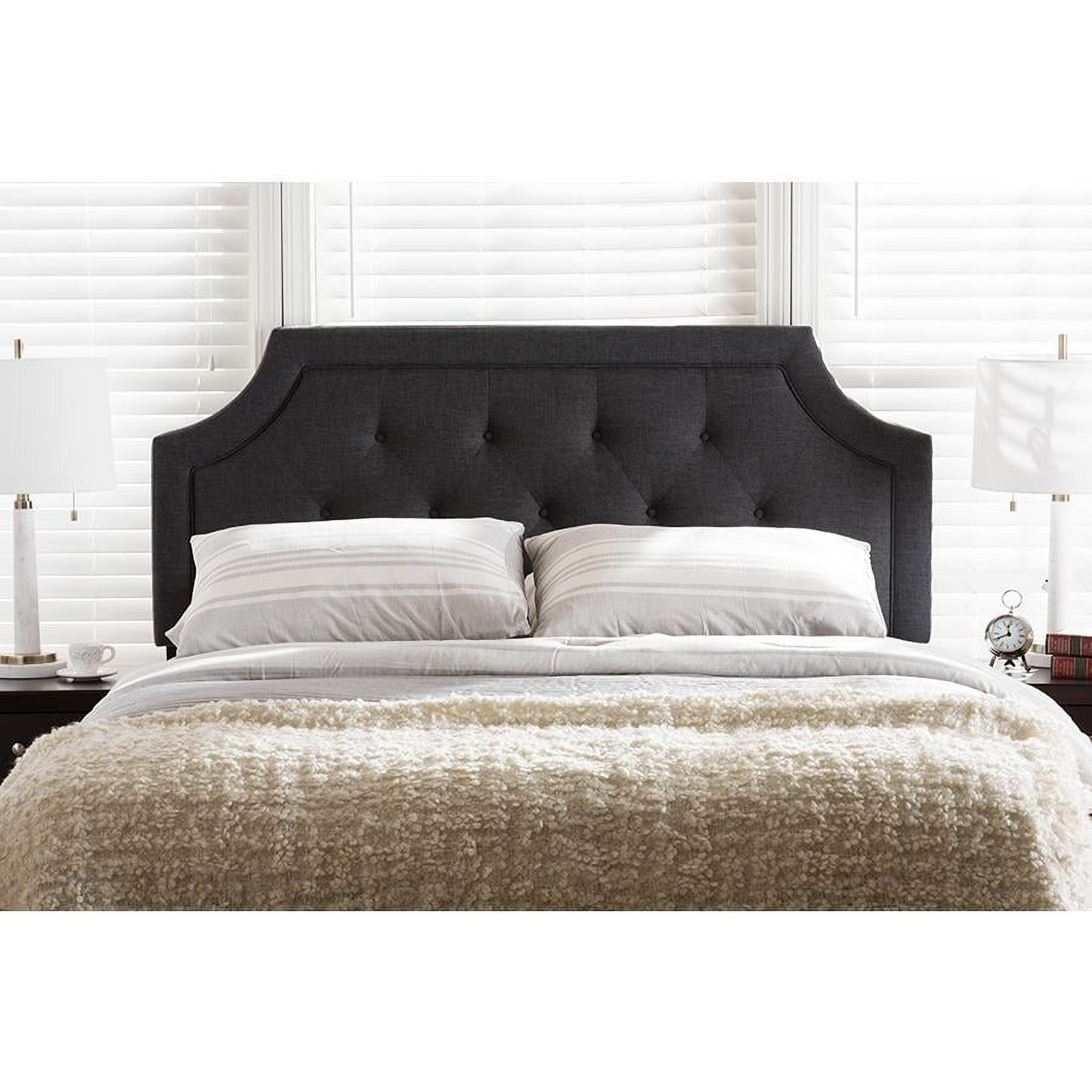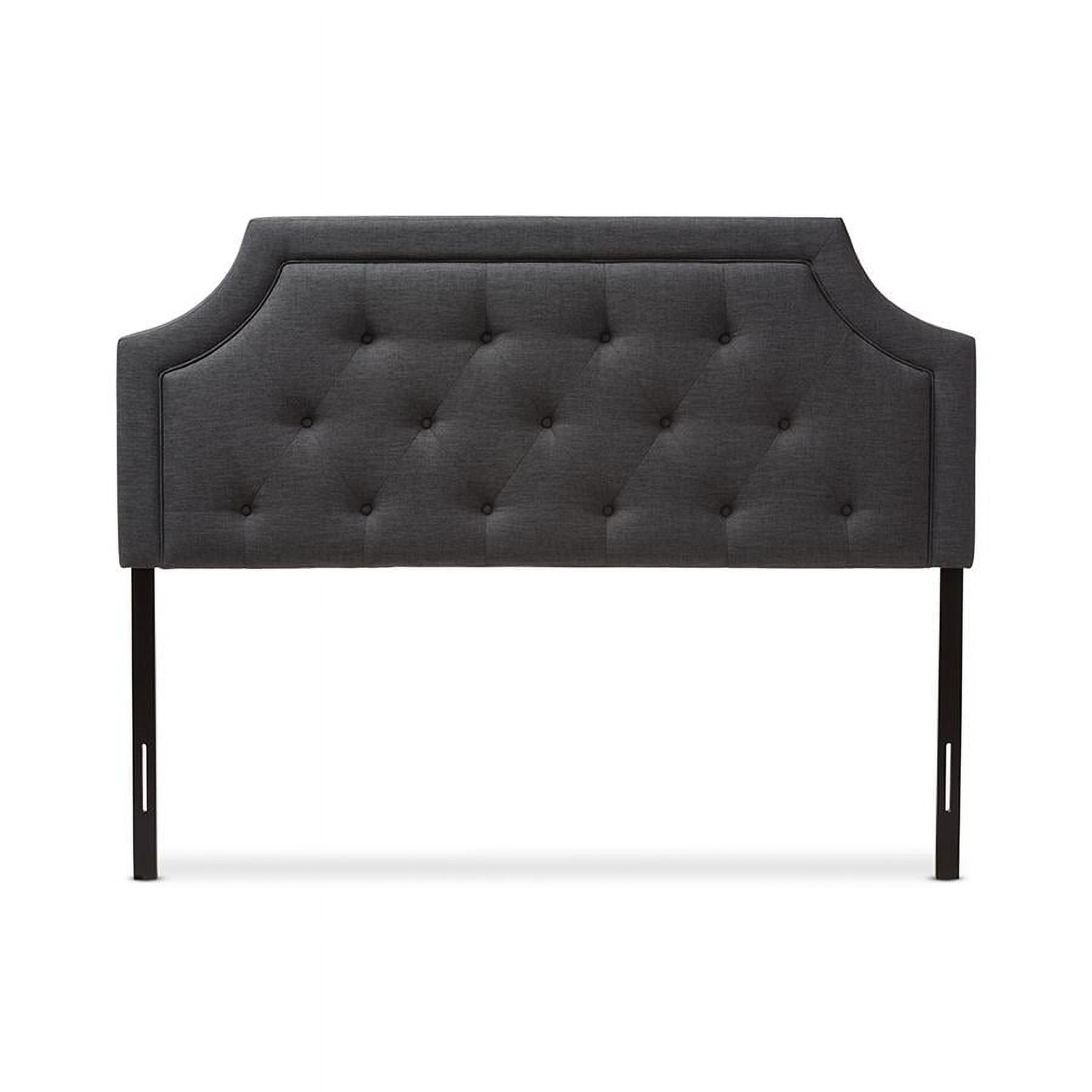 Baxton Studio Mars Modern and Contemporary Dark Grey Fabric Full Size Headboard,Wholesale Interiors With its quality finishes and classic look, the Mars fabric upholstered headboard with solid rubberwood legs is available in a range of warm hues to complement your look. Romantic bedhead shape with exquisite corners and curves, putting a modern edge on classic design. Constructed of solid rubberwood and MDF, the Nadeen full size headboard is upholstered in durable dark grey polyester fabric. Featuring deep button-tufted design for a classic look, the Mars is supported sturdily by the wood posts with 5-level adjustable pre-drilled screw holes to the headboard and 2-level adjustable to the bed frame. Leg supports are invisible once set up and can be adjusted to suit the height of your ensemble for convenience. Traditional adjustable metal bed frame such as Leggett and Platt bed frame will work well with the headboard. Cushioned headboard is padded with high-density foam for softness and shape, providing a comfortable leaning space. Made in Malaysia, the Mars headboard requires assembly. Specifications: Contemporary headboard Fabric upholstered 5-level adjustable wood post attaching the headboard 2-level adjustable wood post attaching the bed frame Cut-out corners with piping Button-tufting design Assembly required