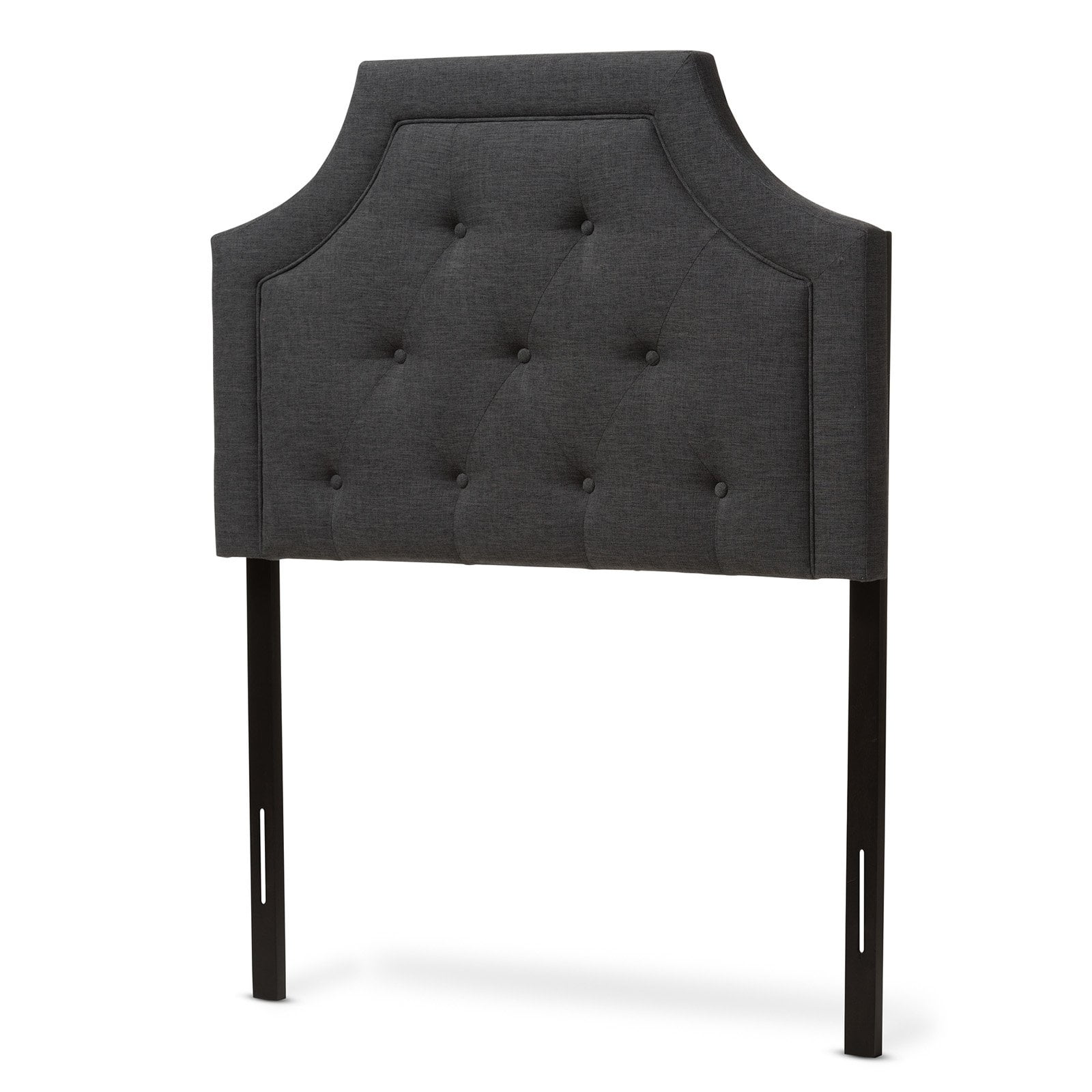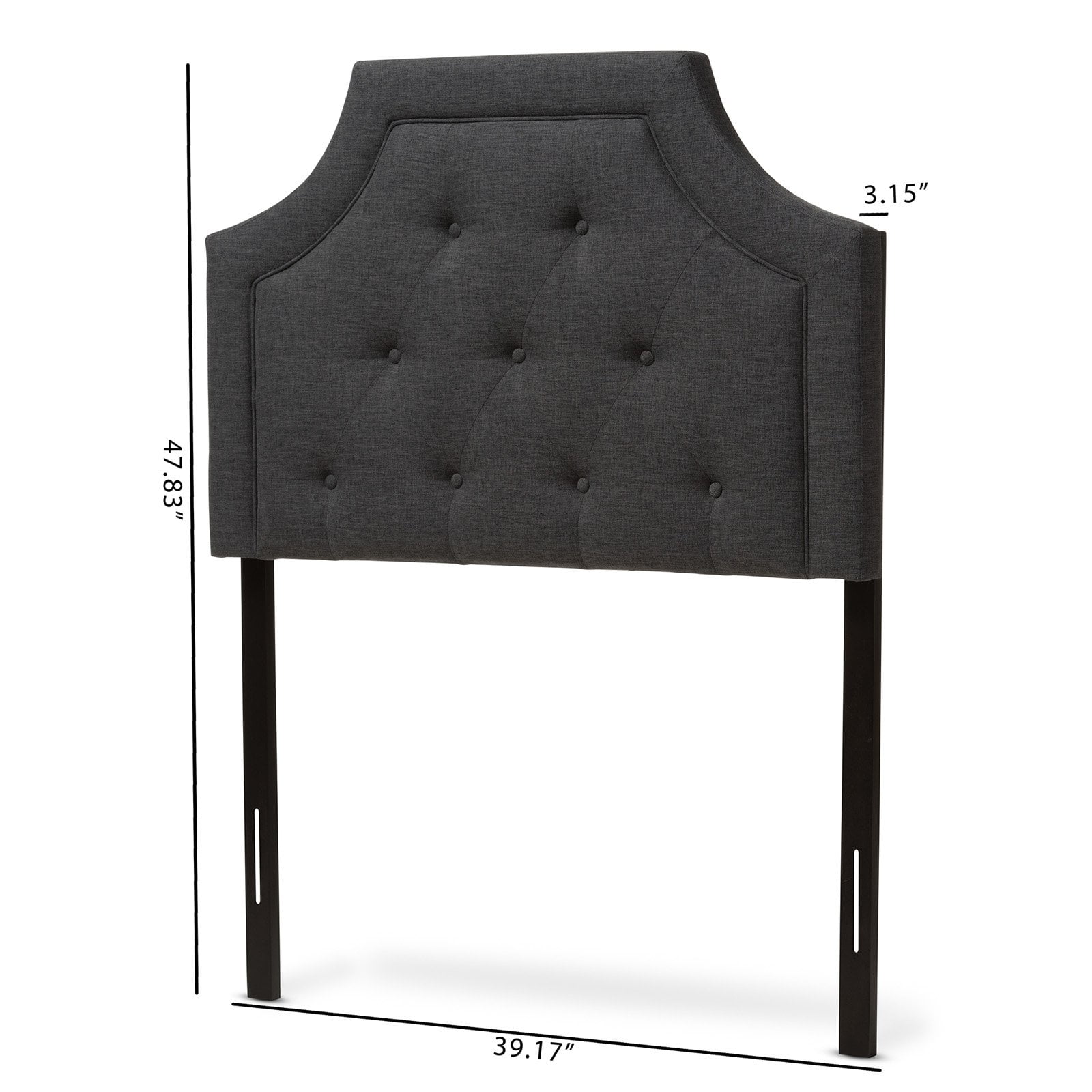 Baxton Studio Mars Modern and Contemporary Dark Grey Fabric Twin Size Headboard,Wholesale Interiors With its quality finishes and classic look, the Mars fabric upholstered headboard with solid rubberwood legs is available in a range of warm hues to complement your look. Romantic bedhead shape with exquisite corners and curves, putting a modern edge on classic design. Constructed of solid rubberwood and MDF, the Nadeen twin size headboard is upholstered in durable dark grey polyester fabric. Featuring deep button-tufted design for a classic look, the Mars is supported sturdily by the wood posts with 5-level adjustable pre-drilled screw holes to the headboard and 2-level adjustable to the bed frame. Leg supports are invisible once set up and can be adjusted to suit the height of your ensemble for convenience. Traditional adjustable metal bed frame such as Leggett and Platt bed frame will work well with the headboard. Cushioned headboard is padded with high-density foam for softness and shape, providing a comfortable leaning space. Made in Malaysia, the Mars headboard requires assembly. Specifications: Contemporary headboard Fabric upholstered 5-level adjustable wood post attaching the headboard 2-level adjustable wood post attaching the bed frame Cut-out corners with piping Button-tufting design Assembly required