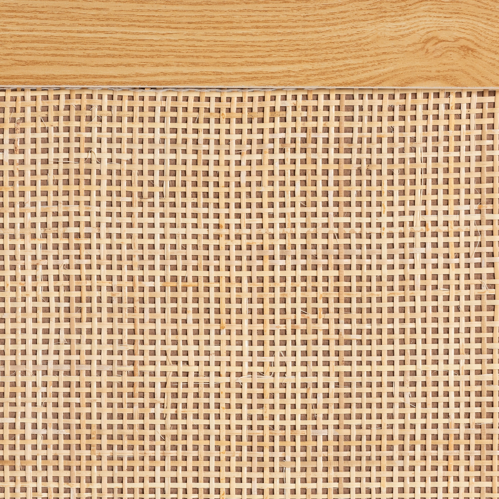 Mid-century storage cabinet Constructed from Engineered Wood, Pine Wood, and natural rattan