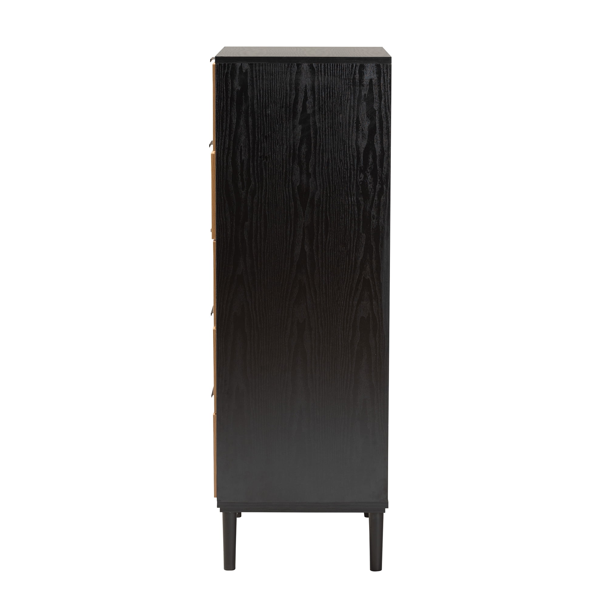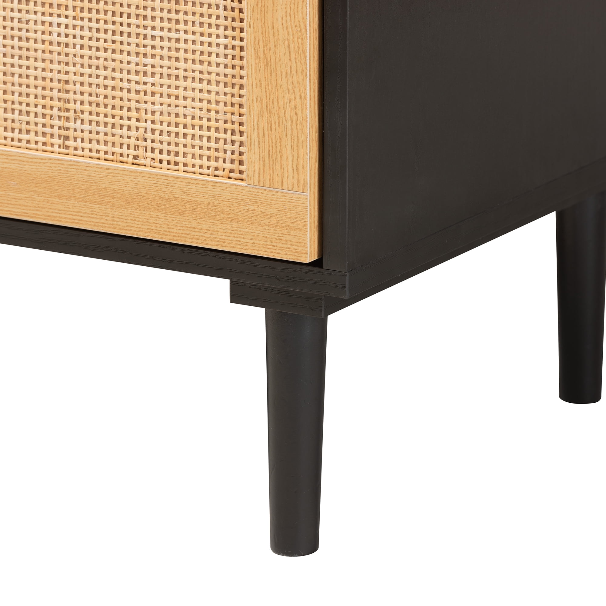 Embrace the rustic warmth of traditional craftsmanship with the lovely Maureen storage cabinet. Made in China, this bold addition is comprised of a solid wood frame adorned with woven rattan embellishments. Five drawers offer plentiful storage space to organize a variety of household essentials. The Maureen requires assembly and utilizes tapered legs for excellent stability and support in streamlined design. Minimalist drawer handles lend a contemporary touch, making the Maureen storage cabinet an outstanding addition to any space. Due to the nature of the natural materials used in this product, it may have variations in areas such as, but not limited to, color, pattern, grain and texture. The hair-like strands of rattan/rattan-fiber are common due to nature of the material.