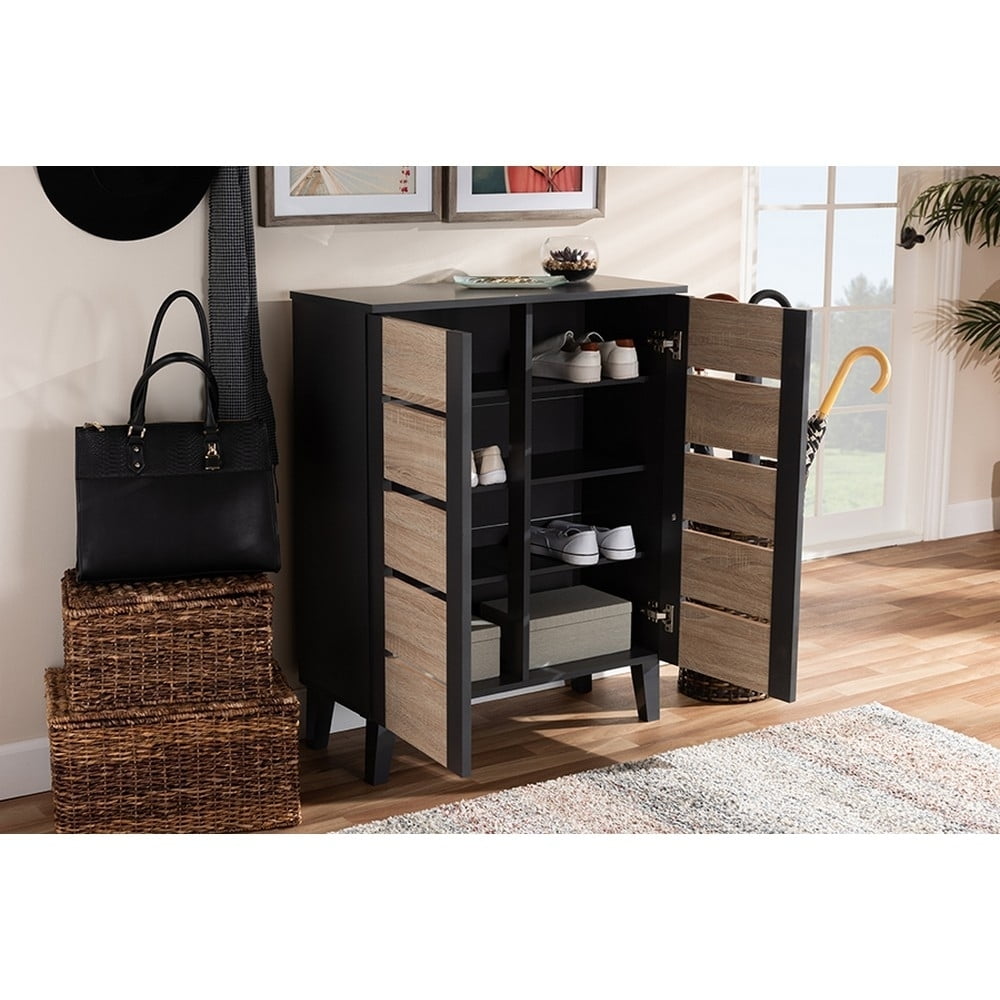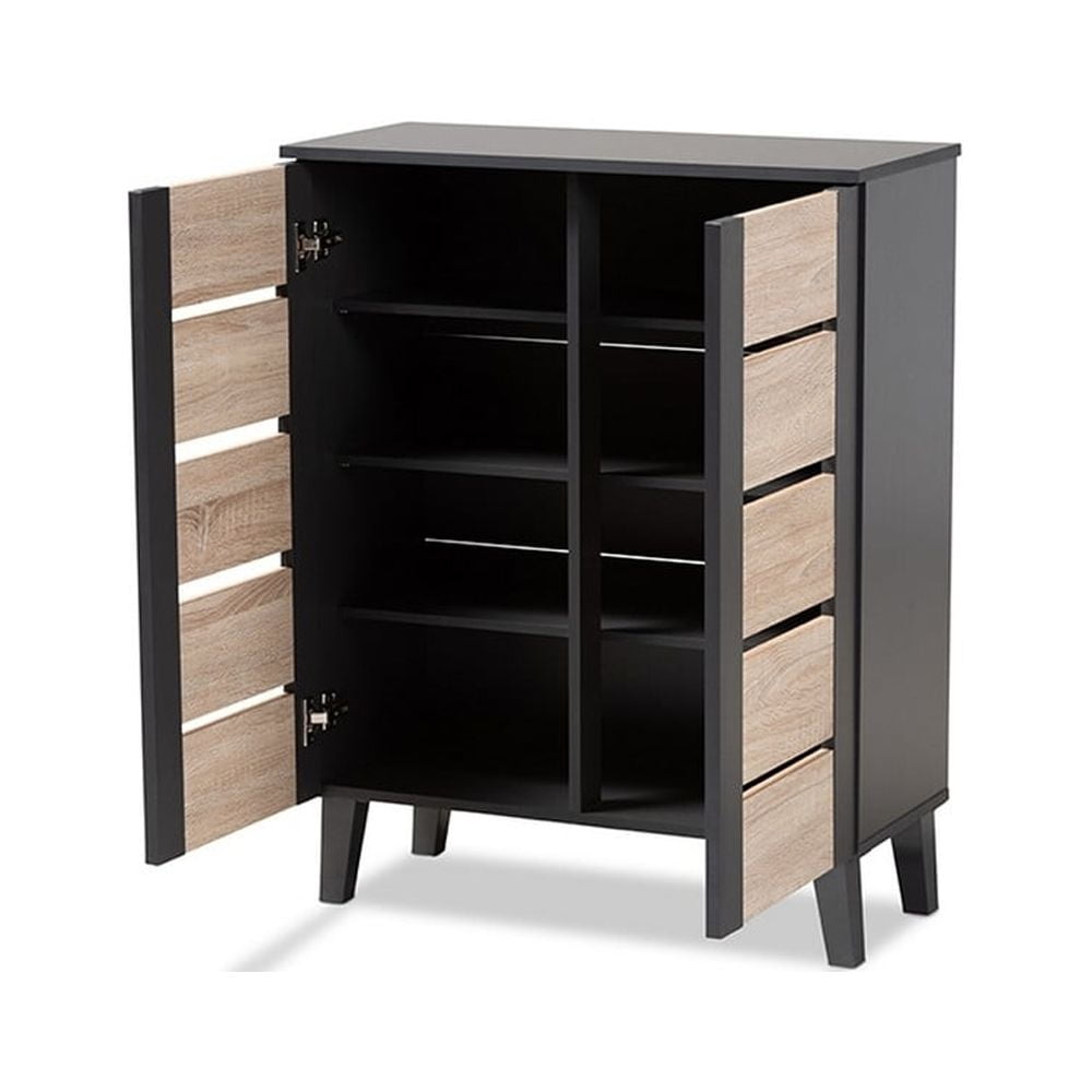 Baxton Studio Melle Modern and Contemporary Two-tone Oak Brown and Dark Gray 2-Door Wood Entryway Shoe Storage Cabinet