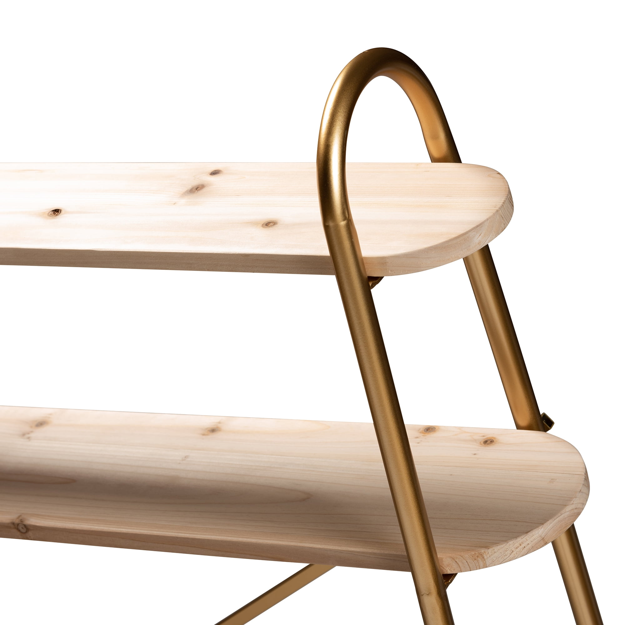 Baxton Studio Merida Glam and Luxe Brushed Gold Finished Metal and Natural Brown Finished Wood 2-Tier Over Bed Queen Size Storage Display Shelf