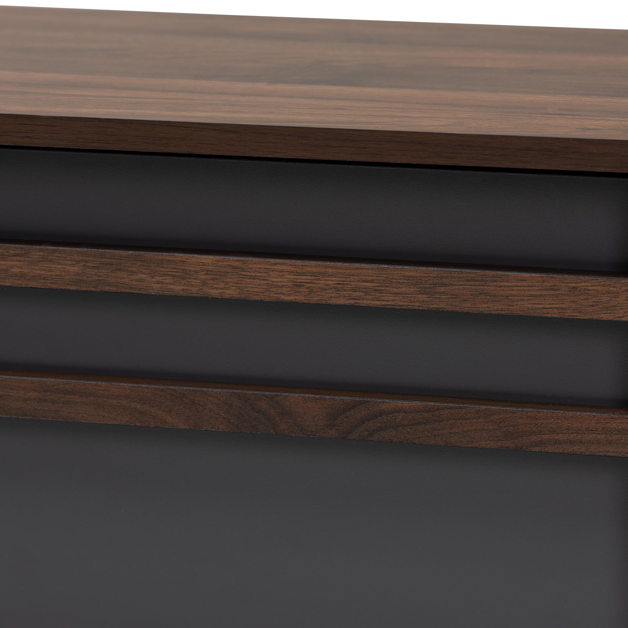 Baxton Studio Naoki Modern and Contemporary Two-Tone Grey and Walnut Finished Wood TV Stand with Drop-Down Compartments