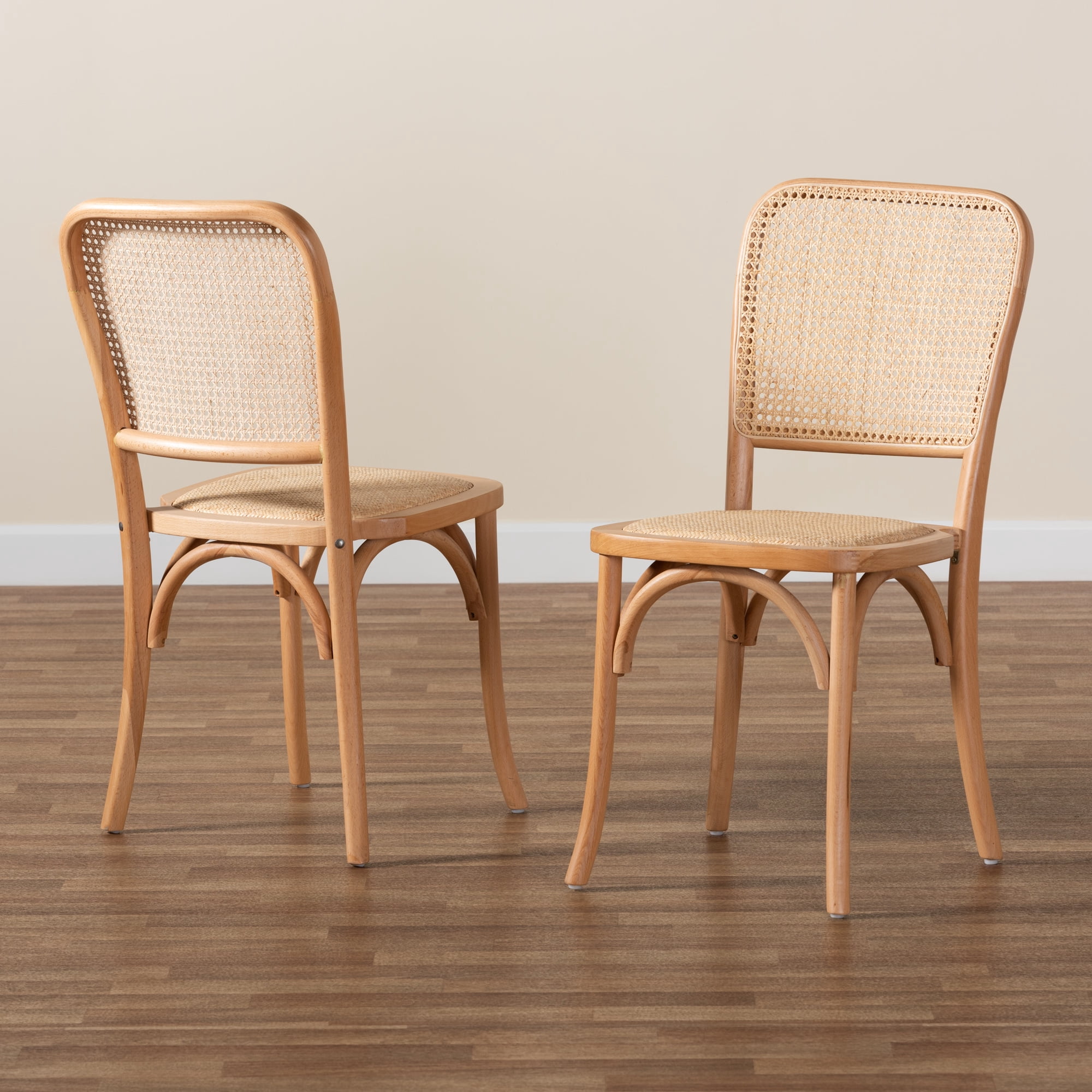 Baxton Studio Neah Dining Chair, Set of 2, Beige and Natural Brown