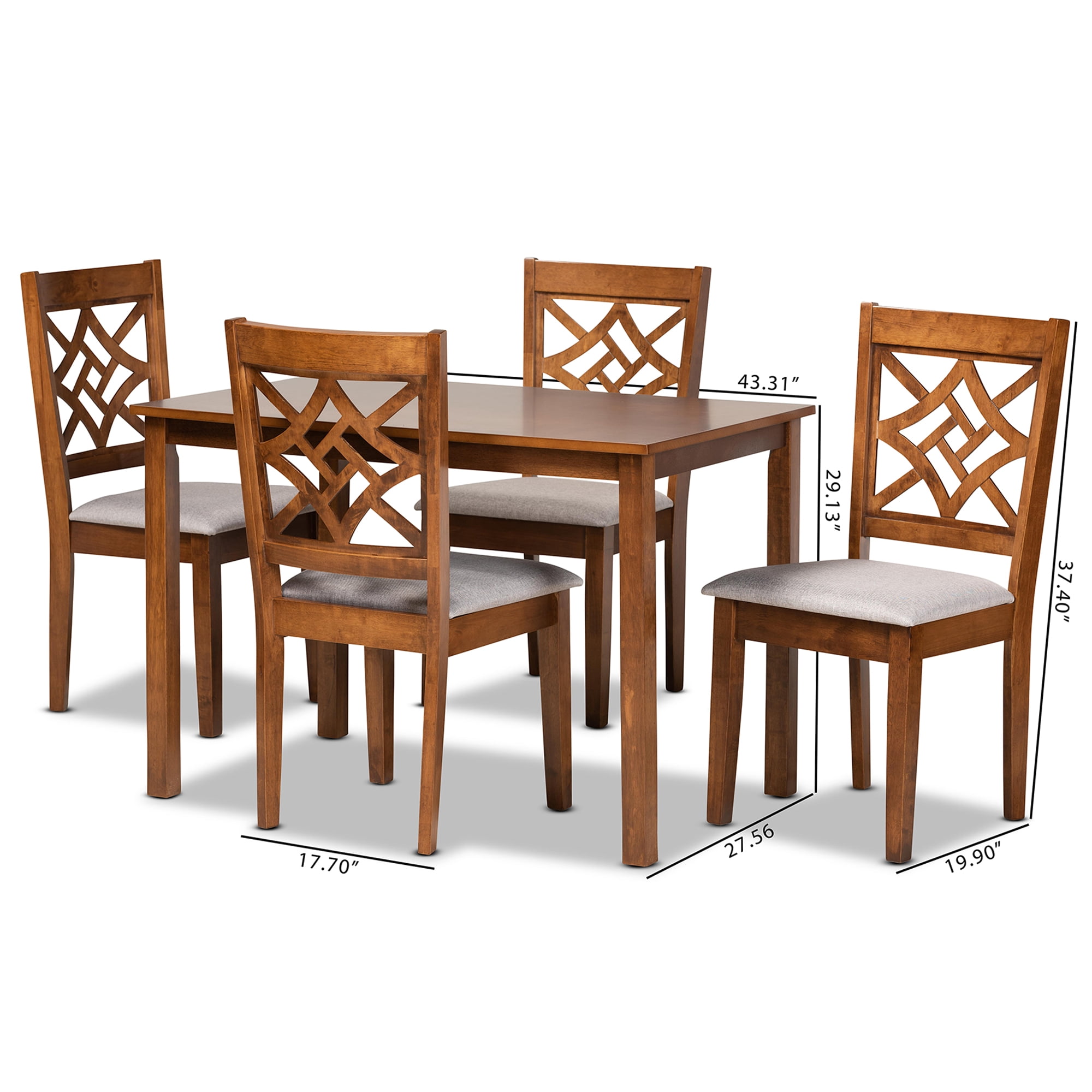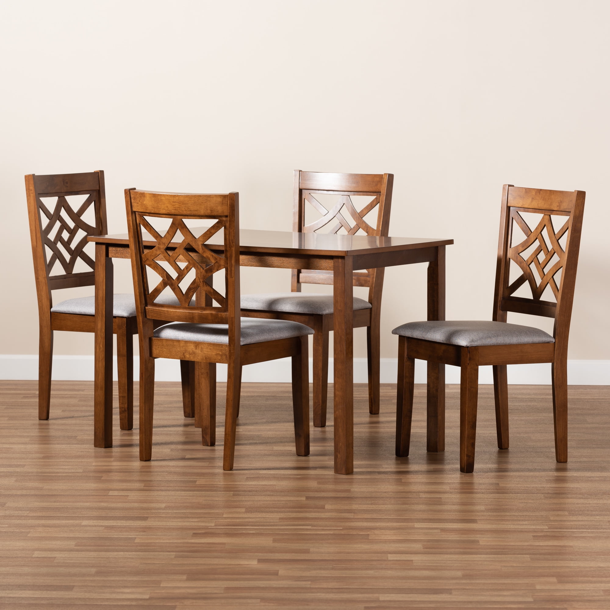 Baxton Studio Nicolette Modern and Contemporary Grey Fabric Upholstered and Walnut Brown Finished Wood 5-Piece Dining Set
